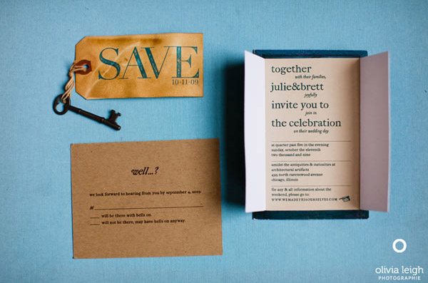 No hace mucho una seguidora del blog me comentó que tenía un montón de llaves antiguas y que no sabía qué hacer con ellas, así que la semana pasada empecé a buscar información sobre un objeto decorativo que siempre me ha gustado muchísimo. No me preguntéis por qué pero desde pequeña me han atraído mucho las llaves antiguas y sus cerraduras, debe ser por mi curiosidad innata. Buscando, buscando, me encontré con este Save the Date que enseguida me encantó por su sencillez. La protagonista es una llave antigua y veréis que es algo muy fácil de hacer si contáis con el material adecuado (la llave y la papelería de estilo vintage). La etiqueta que acompaña la llave tiene un aire de ‘objeto usado’, como de segunda mano, y eso precisamente es lo que la hace más atractiva. En este caso, este fue el primer elemento que acompañó a una boda DIY en la que el novio (diseñador gráfico) creó toda la papelería además de la página web del enlace. La invitación de boda fue la prolongación de su Save the Date, ya que mantuvo la misma línea vintage, como el resto de cartelería. Espero haberos dado con este post alguna idea más para usar esas llaves olvidadas en casa de vuestras abuelas.
