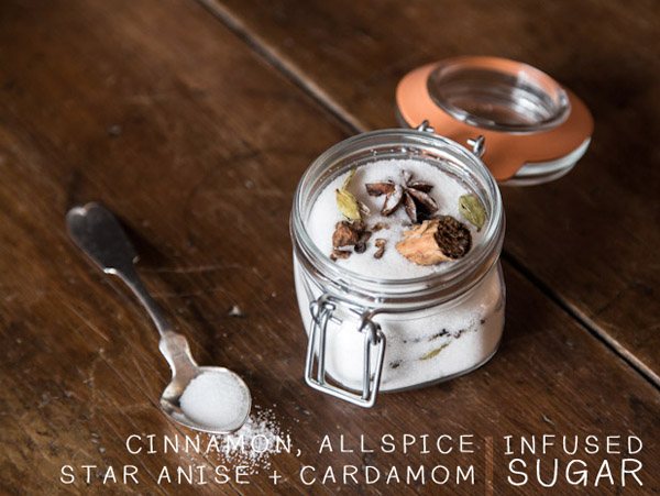 Azúcar con pimienta de Jamaica, anís estrellado y cardamomo. Ideal para acompañar una buena taza de café.