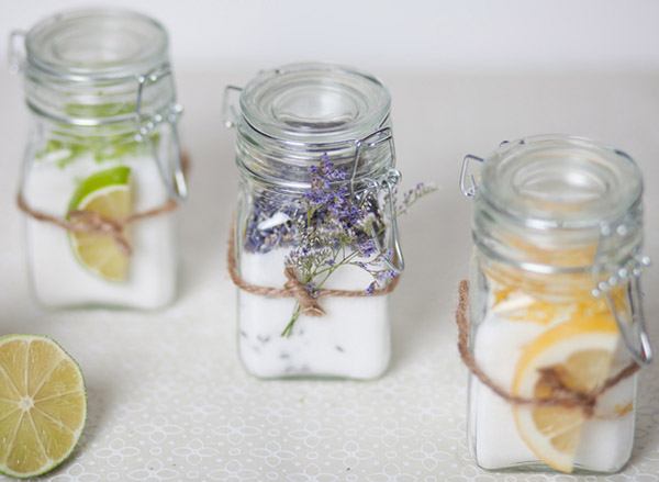 Vais a necesitar: azúcar granulada, tarritos de cristal con tapa hermética y especias o frutas como el limón, la canela, anís, vainilla, lavanda, frambuesa…