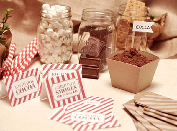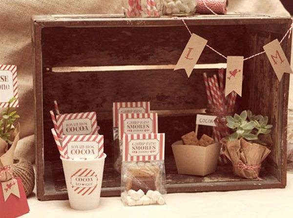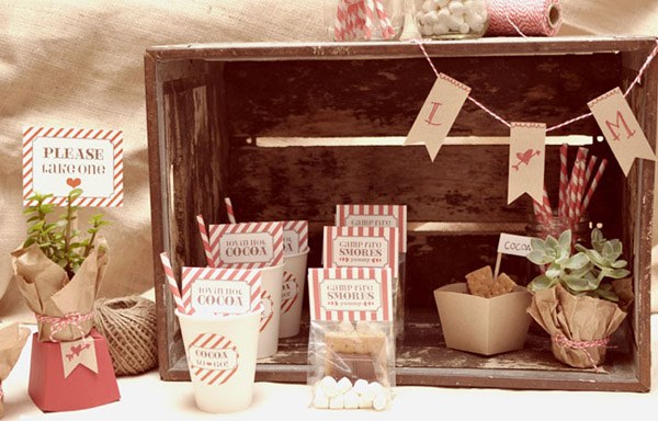 Estos días en los que el otoño hace notar su presencia y apetece coger la mantita y sentarse frente a una chimenea hacen que muchas veces piense en las bodas de invierno, a las que cada vez veo más encanto. Hoy precisamente os traigo un tutorial que podéis utilizar para regalar a vuestros invitados o como complemento de la recena. Se trata de una tradición americana que consiste en quemar ‘marshmallows’, lo que aquí conocemos como nubes de algodón y untarlas en chocolate caliente, es un tentempié muy dulce que provoca disfrutar de una buena compañía junto a un agradable fuego. Para empezar vais a necesitar: tabletas de chocolate, nubes de algodón, galletas, chocolate en polvo, bolsitas transparentes, bolsitas de papel kraft, etiquetas de cartón, pajitas, vasos de plástico, grapadora (y/o pegamento) y varias plantillas que os podéis descargar aquí