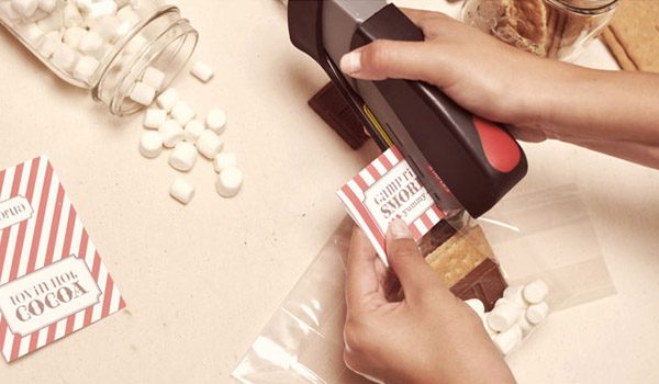 4. Grapar (o pegar) de nuevo una etiqueta de cartón ya impresa, en la parte superior de la bolsita.