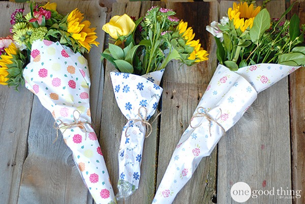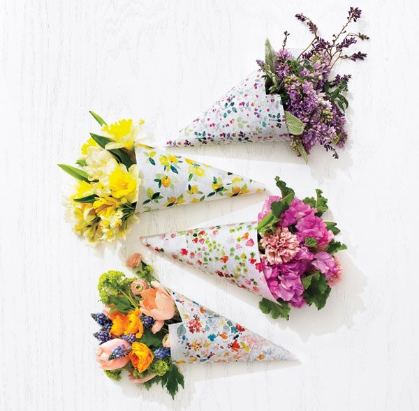 Hay algo que siempre me gusta que me regalen, no es ni caro ni original pero siempre está de moda, se trata de un ramo de flores y si es sencillo y no muy grande mucho mejor. No importa si es por un cumpleaños, un aniversario o porque ‘hoy es hoy’, el caso es que estoy segura de que prácticamente todas opinaréis como yo porque… a quién no le gusta recibir flores? Hay gente que tiene mucha mano con las plantas, no es mi caso yo soy más bien todo lo contrario, pero para las plantas se necesita una buena dosis de paciencia y de tiempo y de momento carezco de ambas cosas pero seguro que si logro llegar a jubilarme algún día lo conseguiré. La ventaja de los ramos de flores es que sabes que hagas lo que hagas no duran demasiado por lo que no es necesario cuidarlos en exceso, basta con ir controlando el agua y poco más, pero los primeros días lucen radiantes en su florero y alegran cualquier habitación y si además son ese tipo de flores de larga duración pues todavía mejor. Muchas veces nos empeñamos en regalar a nuestros invitados objetos inútiles que acaban en un cajón o cosas que no gustan a todos por igual, así que lo que os propongo hoy como regalo especial para vuestros invitados es que les obsequiéis con un pequeño ramo de flores, un detalle que podéis incluso preparar vosotras mismas combinando distintas especies o destacando una sola, como un ramo de margaritas o de pequeñas rosas de pitiminí, de flores silvestres o de lavanda, decorando los diferentes ramilletes con papeles de colores, con estampados llamativos o empleando una estética más vintage o con un sencillo papel kraft. También podéis imprimir o caligrafiar sobre el papel vuestros nombres y la fecha del enlace, todo depende de vuestros gustos, vuestra creatividad y de la línea ornamental de la boda pero las posibilidades son múltiples y el resultado… una sonrisa asegurada.