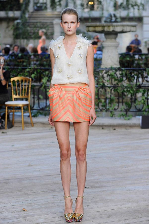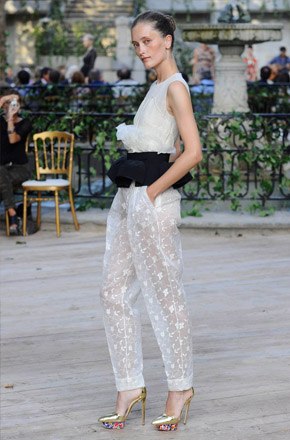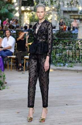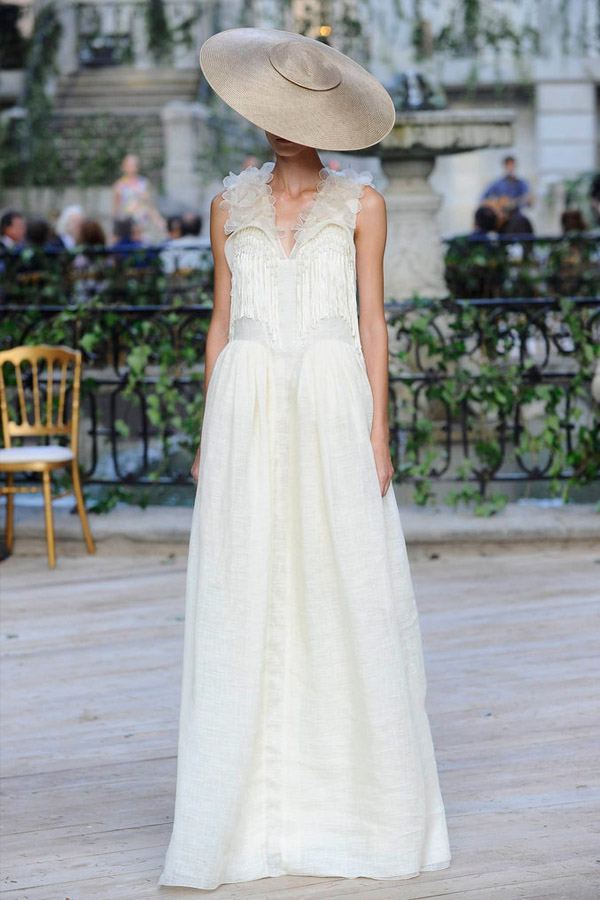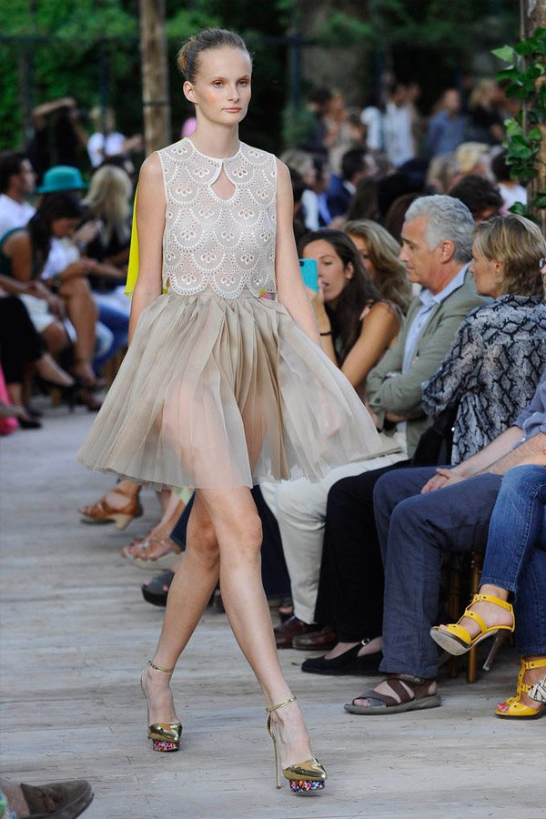 El genio ha vuelto y lo ha hecho por la puerta grande aunque de manera discreta, con esa tímida sonrisa a la que ya nos tiene acostumbrados. He querido dedicar mi primer post de regreso de las vacaciones a la figura de Josep Font, un alma creativa en búsqueda continua de la perfección onírica, primero porque soy una enamorada de su trabajo y segundo porque tengo el placer de conocerlo personalmente y es un ser encantador. Recuerdo todavía el primer desfile que producimos para él en la agencia en la que trabajaba, en el del pasado jueves en Madrid volvió a recuperar la pasarela circular como hizo en aquella ocasión en la ya desaparecida plaza de toros Monumental de Barcelona. Por aquel entonces yo estaba hecha un manojo de nervios porque era mi primer desfile con él y las modelos debían desfilar en torno a una enorme hoguera con fuego real, le propusimos utilizar efectos especiales porque se preveía viento pero él no quiso, Josep es así, auténtico de principio a fin. En esta ocasión eligió el Parque de El Capricho, el lugar perfecto para su reaparición tomando las riendas creativas de otro genio recientemente desaparecido, Jesús Del Pozo. Caía la tarde y, bajo los compases de la música en directo de The Chinese Birdwatchers, empezaba a desfilar una eterna adolescente, esa niña-mujer musa del diseñador en todas sus creaciones. Font domina como nadie los tejidos y lo demostró una vez más con la variedad de gasas, organzas, bordados, apliques de flecos a encajes guipur, volantes, corsés y largos de todo tipo, desde minifaldas a vestidos de noche con gran caída. La pasarela se iba llenado de modelos con transparencias, faldas tulipán y pantalones tobilleros de tiro alto remarcando unas caderas imposibles. Los colores pastel y los tonos nude han ido dando paso a colores más vibrantes como el coral, el amarillo o ese azul que ya puede recibir el calificativo de ‘azul Font’, tan característico en las colecciones del diseñador. El estampado floral ha cobrado vida transformándose en aplicaciones de flores confeccionadas con telas y pedrería y, como únicos complementos, grandes pamelas planas de inspiración oriental y altísimos tacones con plataformas de estampado foral. Toda una muestra de maestría y dominio de la aguja de la mano de uno de los grandes modistos españoles al que ya echábamos en falta pero que ha sabido volver por la puerta grande.