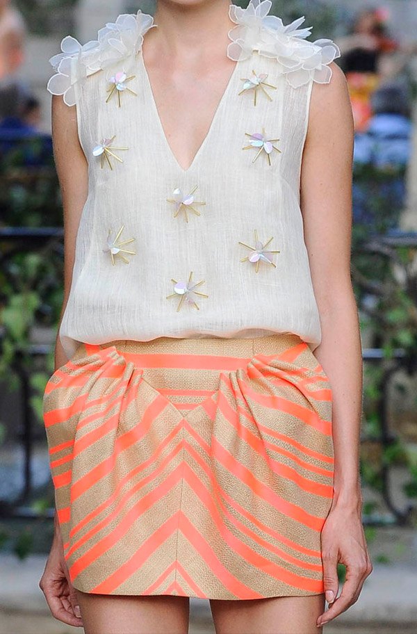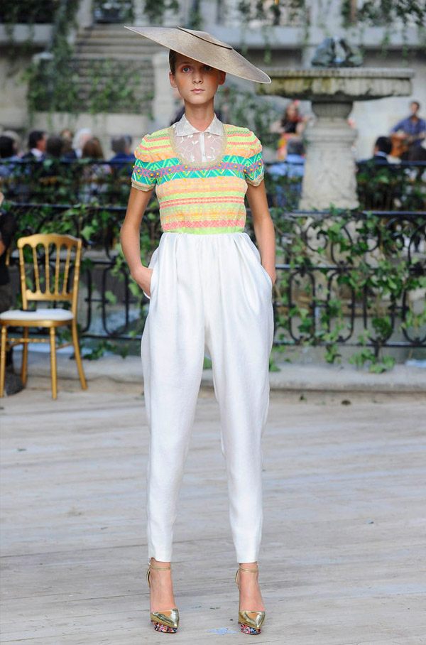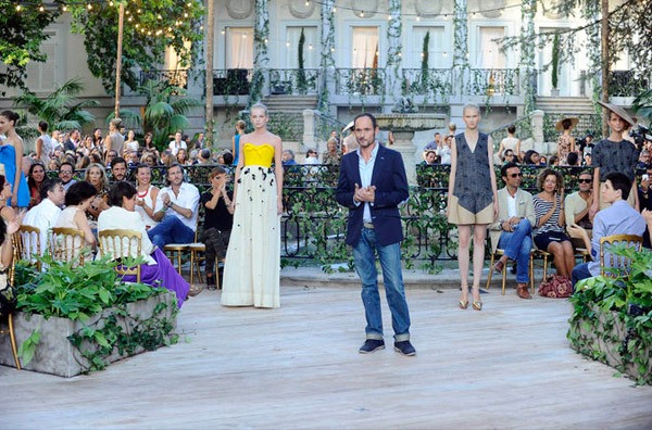 El genio ha vuelto y lo ha hecho por la puerta grande aunque de manera discreta, con esa tímida sonrisa a la que ya nos tiene acostumbrados. He querido dedicar mi primer post de regreso de las vacaciones a la figura de Josep Font, un alma creativa en búsqueda continua de la perfección onírica, primero porque soy una enamorada de su trabajo y segundo porque tengo el placer de conocerlo personalmente y es un ser encantador. Recuerdo todavía el primer desfile que producimos para él en la agencia en la que trabajaba, en el del pasado jueves en Madrid volvió a recuperar la pasarela circular como hizo en aquella ocasión en la ya desaparecida plaza de toros Monumental de Barcelona. Por aquel entonces yo estaba hecha un manojo de nervios porque era mi primer desfile con él y las modelos debían desfilar en torno a una enorme hoguera con fuego real, le propusimos utilizar efectos especiales porque se preveía viento pero él no quiso, Josep es así, auténtico de principio a fin. En esta ocasión eligió el Parque de El Capricho, el lugar perfecto para su reaparición tomando las riendas creativas de otro genio recientemente desaparecido, Jesús Del Pozo. Caía la tarde y, bajo los compases de la música en directo de The Chinese Birdwatchers, empezaba a desfilar una eterna adolescente, esa niña-mujer musa del diseñador en todas sus creaciones. Font domina como nadie los tejidos y lo demostró una vez más con la variedad de gasas, organzas, bordados, apliques de flecos a encajes guipur, volantes, corsés y largos de todo tipo, desde minifaldas a vestidos de noche con gran caída. La pasarela se iba llenado de modelos con transparencias, faldas tulipán y pantalones tobilleros de tiro alto remarcando unas caderas imposibles. Los colores pastel y los tonos nude han ido dando paso a colores más vibrantes como el coral, el amarillo o ese azul que ya puede recibir el calificativo de ‘azul Font’, tan característico en las colecciones del diseñador. El estampado floral ha cobrado vida transformándose en aplicaciones de flores confeccionadas con telas y pedrería y, como únicos complementos, grandes pamelas planas de inspiración oriental y altísimos tacones con plataformas de estampado foral. Toda una muestra de maestría y dominio de la aguja de la mano de uno de los grandes modistos españoles al que ya echábamos en falta pero que ha sabido volver por la puerta grande.