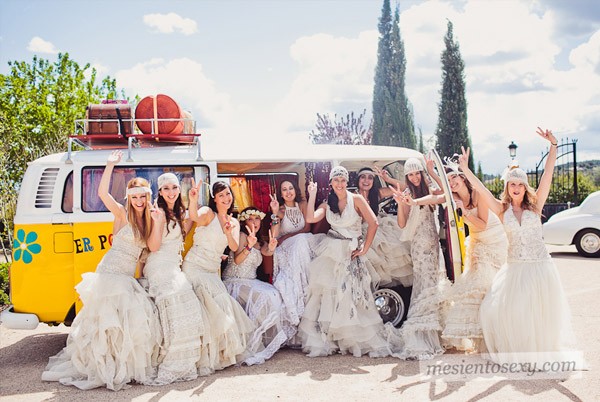 La semana pasada os explicaba cómo fue la primera parte del encuentro de Wedding Bloggers Te Concedo 3 Deseos (#TC3D) en Valencia. Nos quedamos en la tarde-noche del sábado cuando, después de pasar unas horas rodeadas de belleza y moda, nos volvimos a subir en las limusinas para dirigirnos hacia un nuevo local de moda de la noche valenciana, el Wakaya Lounge. De estética minimalista y asiática, el restaurante está situado en plena Albufera, a pocos metros del mar, aunque como llegamos de noche no pudimos apreciar sus impresionantes vistas pero sí su maravilloso chill-out al aire libre, con cama asiática incluida. Allí degustamos un aperitivo antes de cenar y pudimos hacernos algunas fotos con los tocados que Abaloop nos dejó para la ocasión. Tras la cena más sorpresas y regalos, los anillos de Deborah Gil, ideales para lucir en una noche especial como la que vivimos. Os imaginaréis que acabamos muertas, así que de allí nos fuimos a dormir totalmente rendidas y, menos mal, porque no podíamos ni imaginar lo que nos esperaba al día siguiente. La verdad es que la mayoría sospechábamos que pasaríamos la mañana relajadas en un spa urbano pero nada más lejos de la realidad. Los Aladinas nos tenían preparada una agenda de lo más completa, empezando por una sesión de maquillaje para posteriormente lucir los vestidos de novia de YolanCris y Miquel Suay. Os podéis imaginar nuestra reacción, imposible olvidar la cara de Keyla de Diario de Bodas al enterarse de la noticia. Además de los vestidos también pudimos combinar complementos y unos zapatos maravillosos que Menbur nos regaló. Estoy por volverme a casar para poder lucirlos. Tras más fotos nos dirigimos a la entrada del Hotel Solvasa, donde nos esperaban varios coches clásicos de boda y unas divertidas Volkswagen T1, las novias más tradicionales subimos en los Rolls Royce y las más hippys en las furgonetas, rumbo a un destino desconocido. Y así fue como llegamos al Huerto de San José, un espacio especialmente diseñado para bodas al aire libre donde de nuevo Made in Catering nos sorprendió con un montón de delicatessen entre las que, como broche a nuestra estancia en Valencia, no podía faltar el tradicional ‘arroz del senyoret’. Y, casi sin darnos cuenta, la mañana se nos pasó en un abrir y cerrar de ojos. Pero a nuestro regreso al hotel todavía quedaban las últimas sorpresas, un montón de regalitos que las marcas colaboradoras quisieron hacernos y que nos encantaron. He de agradecer desde aquí todo el trabajo de nuestras tres Aladinas y toda la implicación y generosidad de las empresas que hicieron posible nuestra inolvidable estancia en Valencia. Ah! ¿Y no tenéis curiosidad por saber para qué servía finalmente la famosa cuchara de palo?… Pues exactamente para NADA! Fue una maniobra de despiste de las Aladinas pero que dio lugar a muchísimo juego y al cruce de cientos de mails a cual más divertido. ¡Mil gracias de corazón!
