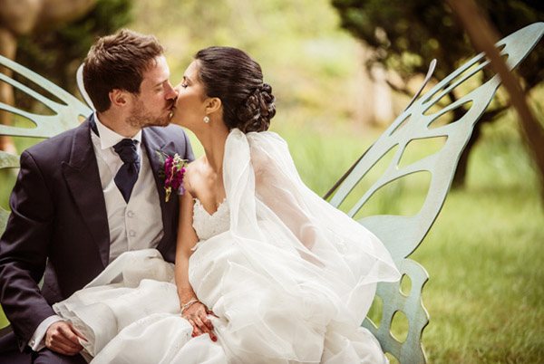 Dulces, salados, apasionados, tímidos, recatados, lascivos, sensuales… los besos son una de las cosas más presentes en las bodas. No sólo entre los novios, también entre los invitados, amigos, familiares, niños e incluso técnicos, músicos, wedding planners y es que en las bodas todo el mundo (o casi todo) es feliz y se siente inundado por esa corriente de Amor que respira el ambiente. Me gusta mucho ver fotografías de distintos novios besándose el día de su boda, si las miras detenidamente te pueden dar una idea del tipo de personas que son e incluso pistas sobre su relación. Sí, hablo en serio, probadlo un día, es muy divertido jugar a adivinar la historia que hay detrás de cada pareja, descubrir cuál de los dos es el Amante y cual el Amado, como expresaba Antonio Gala. En un reportaje de bodas no puede faltar una o varias fotos del ‘esperado beso’ de los novios. Solemos ver besarse a nuestros amigos a diario pero parece que el día de la boda todos estemos esperando con pasión el momento del beso, es como si ese gesto demostrase ‘oficialmente’ al resto del mundo que se quieren y que desean pasar el resto de sus vidas juntos, ¿no os ha pasado? A mí me pasa siempre, es como la rúbrica a una historia de amor con final feliz y es que todavía a estas alturas no puedo evitar emocionarme cuando lo veo… Espero que disfrutéis con las imágenes!