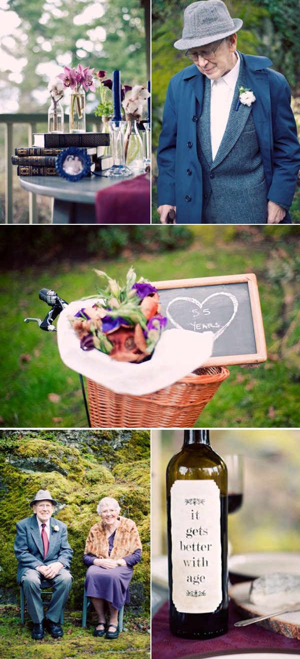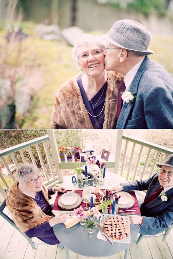 Hace unos días sorteamos en el blog una sesión pre-boda y la verdad es que tuvo mucha acogida. Y es que últimamente se ha puesto muy de moda el realizar un reportaje fotográfico antes de la celebración de la boda, es una manera divertida de ‘despedirse’ de la soltería y de tener un recuerdo visual de un momento que es tan importante, bajo mi punto de vista, como el de la boda. Pero, claro, hace unos años esto ni se lo planteaban las parejas que iban a casarse, por lo que no han podido conservar físicamente ese momento especial. Pensando en ello encontré este entrañable reportaje y me dije… ¿por qué no tener también ese recuerdo una vez ha pasado ya un tiempo de la boda? En este caso sería un reportaje fotográfico post-boda y, aunque yo no esperaría a tener la edad de la pareja que hoy ilustra este post, sí que os recomiendo que lo hagáis. Además de divertiros posando es también una manera metafórica de renovar de forma íntima los votos matrimoniales y de seguir confirmando que el amor sigue presente en vuestras vidas, a pesar de los años. Porque el amor, como el buen vino, mejora con la edad. Yo ya me lo estoy planteando, y eso que apenas hace un año que me casé… Deseo que os guste la idea tanto como a mí.