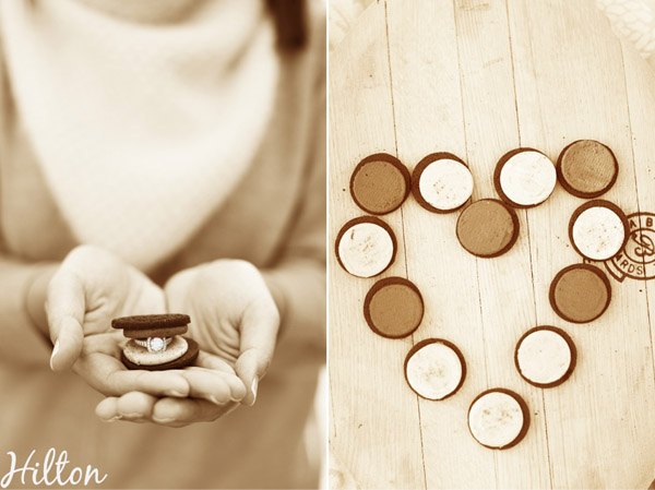 Se acerca San Valentín y muchas personas aprovechan estas fechas para pedir matrimonio a sus parejas, sí, ya sé que es lo obvio-típico-tradicional pero aunque no os lo creáis, a mí me pidió matrimonio mi marido en esta fecha tan especial y tremendamente típica pero no por ello le dije que no, todo lo contrario. Si estáis pensando hacer lo mismo y tenéis una pareja golosa os voy a dar una idea diferente para que la sorprendáis. Sin que ella lo sepa, organizad un picnic improvisado en un parque cercano, mejor que sea una merienda. Una sencilla cesta de mimbre y una mantita a cuadros o una colcha de patchwork o ganchillo ya os servirá. Os recomiendo que lo hagáis a primera hora de la tarde porque esta época del año no es muy propicia para eventos al aire libre, aunque siempre queda muy romántico poder arroparse juntos bajo la manta… Si lleváis un termo con chocolate o leche calentita mucho mejor, podéis acompañarla de cualquier variedad de pastas, muffins o cupcakes pero lo que no os puede faltar es un paquete de galletas tipo Oreo. Y os preguntaréis, ¿para qué?, pues para poner el anillo de compromiso en su interior. ¿No os parece divertido? La puesta en escena ya corre a cargo de la inventiva de cada uno pero estoy segura de que la respuesta será afirmativa.