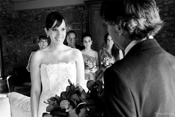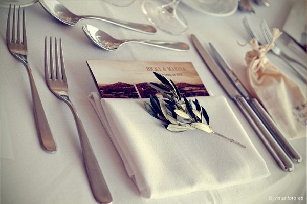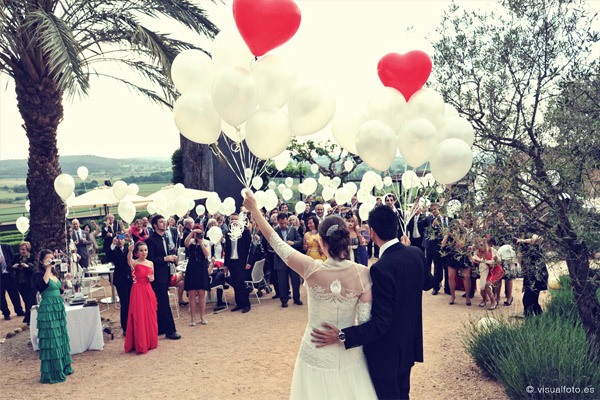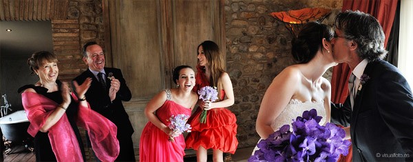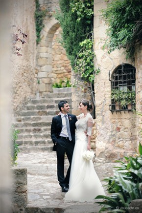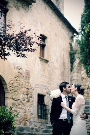 Hoy seguimos en la sección de Bodas Bloggers con una de mis weddingamigas preferidas y es que Marina de Fuxia Atelier es un encanto de persona, tan dulce, tan amable, siempre atenta, pendiente de sus amigos y enamorada, al igual que yo, del Empordà, una zona mágica de la comarca de Gerona de la que ya os he hablado en alguna ocasión. Qué poco podía imaginar Marina lo que iba a cambiar su vida a raíz de su boda y no sólo a nivel personal sino también en su entorno profesional ya que en su afán por ser una ‘cuentinovia’, acabó convirtiéndose en socia de Bodas de Cuento, los profesionales que hicieron posible que su boda fuese única y tal y como ella había soñado y es que Wendy y Jose con sus ‘cuentibodas’ han creado un estilo propio y muy personal en el diseño y organización de bodas handmade totalmente personalizadas, pero de ellos os hablaré detenidamente en otro post que tengo pendiente. Estaba claro que Marina tenía que casarse en el Empordà sí o sí y Ricky estuvo totalmente a favor. Los dos querían transmitir a todos sus invitados su amor por esa tierra así que se idearon un pequeño diario de viaje, que les entregaron junto a las invitaciones, con recomendaciones para pasar un inolvidable fin de semana. La ceremonia se celebró en la Iglesia de Sant Pere de Pals, una construcción de piedra muy austera situada en la parte más antigua de uno de los pueblos más bonitos de la zona y desde la que se puede contemplar todos los campos ampurdaneses debido a su situación elevada. Un paisaje que se repetiría después en la cena y posterior fiesta, celebrada en El Castell d’Empordà, un antiguo castillo convertido en un maravilloso y elegante hotel. La impactante decoración floral de la iglesia fue obra de Jordi de Montana El Taller, un amigo de la familia que hace unos montajes florales increíbles y sorprendentemente originales. Uno de los momentos más emocionantes fue cuando los novios llegaron al Castell y los campos empezaban a teñirse de esa luz mágica del atardecer empordanés , fue entonces cuando hicieron una suelta de globos acompañados de la música en directo de Susanna del Saz, que ya había amenizado antes la ceremonia. La decoración de las mesas también tuvo su toque mediterráneo, colocaron las minutas sobre los platos con una fotografía en tonos sepia del Castell y una ramita de olivo, muy frecuente también en la zona. Toda la parte gráfica fue obra de Srta Edwina y el resto de decoración combinó elementos afrancesados con detalles más vintage. Y entre bálsamos de Olivia y chapas con súper poderes de Mr Wonderful fue transcurriendo la velada hasta llegar a los postres, donde no podía faltar la famosa Candy Bar y el pastel de boda coronado por un original cake topper, una réplica en madera de los novios y de su inseparable gato Nico. El momento más divertido, el ‘lanzamiento de ramo’ a ritmo de Single ladies de Beyoncé y la idea de regalar a las parejas de novios casaderas un bastidor porta alianzas me ha parecido sencillamente genial. Y para acabar y poner el broche final a un día mágico, nada mejor que un photobooth!