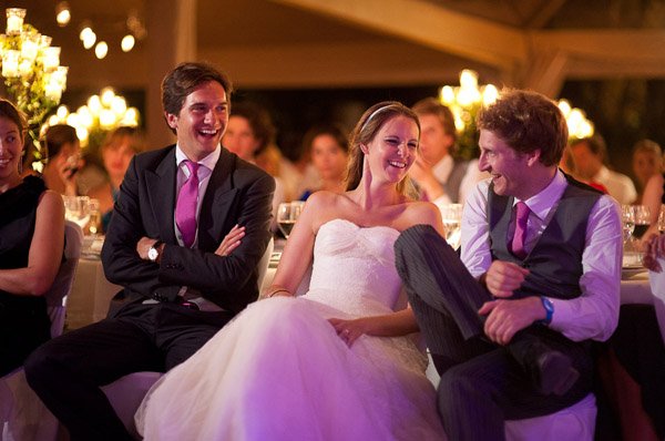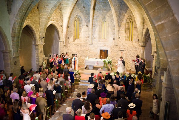 Hoy es viernes y, como cada viernes, nos vamos de boda, pero antes dejadme que os hable de otra de mis grandes pasiones y debilidades. Ya sabéis que soy un poco pesada y que siempre estoy con el vintage, el Kraft, el crochet, el diy…, pero hasta ahora no os había hablado del Baix Empordà, un pedacito de tierra a la que siempre volverías. Para las que no sois de esta zona os diré que el Baix Empordà está en Gerona y para mí es como una pequeña Toscana, un paisaje idílico repleto de pinos, alpacas, brillantes calas de rocas escarpadas y agua muy fría y pueblecitos medievales con un encanto especial. En uno de estos pequeños pueblos, en Sant Sadurní de l’Heura, se casaron Alexandra y Félix, pertenecientes a dos importantes familias de aristócratas afincadas en el barrio de Saint Germain de París. Como entrada no suena mal, ¿verdad? Pues sigue todavía mejor. De lo primero que quiero hablaros es del vestido de la novia, confeccionado a medida en un exclusivo atelier londinense, a juego con unos clásicos Jimmy Choo. Me ha gustado mucho el escote, que ofrece la particularidad de tener unos tirantes anchos de encaje tipo ‘quita y pon’, lo que dio la posibilidad a la novia de poder quitárselos una vez acabada la ceremonia. El novio y sus amigos decidieron ir todos a juego con diferentes modelos de Hackett London, estaban todos guapísimos. La pareja siempre ha estado muy ligada sentimentalmente al Baix Empordà, ya que poseen una impresionante finca en la zona, donde celebraron la recepción, el banquete, la fiesta y el brunch del día siguiente. La ceremonia religiosa se ofició en la iglesia de Sant Genís de Monells y estuvo amenizada por un conjunto de música gospel. Una vez finalizada, la pareja y todos los invitados se dirigieron a la maravillosa plaza porticada y de elegante ambiente medieval de la localidad, acompañados de una orquesta dixieland que animó la primera parte de la fiesta, regada con docenas de botellas de Dom Perignon. Tras esta primera y glamourosa recepción, los invitados se trasladaron a la finca de los novios donde pudieron disfrutar de un cocktail de bienvenida a ritmo de jazz y bossa nova, mientras el sol se ponía tras las montañas. La cena, a la luz de las velas, transformó el ambiente dando paso a emotivos speeches del padre y el hermano de Alexandra y a una divertida performance organizada a modo de sorpresa por los amigos y amigas de la pareja. Como colofón, y presentado como si fuera el Óscar a la mejor película, apareció un espectacular pastel de Escribà Barcelona que dejó a todos con la boca abierta (nunca mejor dicho). Tras el postre llegó la hora de la fiesta, amenizada por un extraordinario grupo francés de hip hop. Toda la organización del evento fue obra de Vanessa Folguera, propietaria de Empordà Events, que con su buen hacer hizo que todo saliera a las mil maravillas. Como anécdota curiosa os diré que para el momento del baile los novios repartieron unas babuchas entre los invitados para que pudieran estar más cómodos, por lo que el guardarropía se convirtió en cuestión de segundos, en el mayor escaparate de modelazos de Jimmy Choo, Louboutin y Manolos habidos y por haber. Como veis, una boda con glamour de los pies a la cabeza que el fotógrafo Manel Tamayo supo captar con su objetivo sin perder ni un solo detalle. Viendo estas fotos me he dado cuenta de lo poco que cuesta soñar…