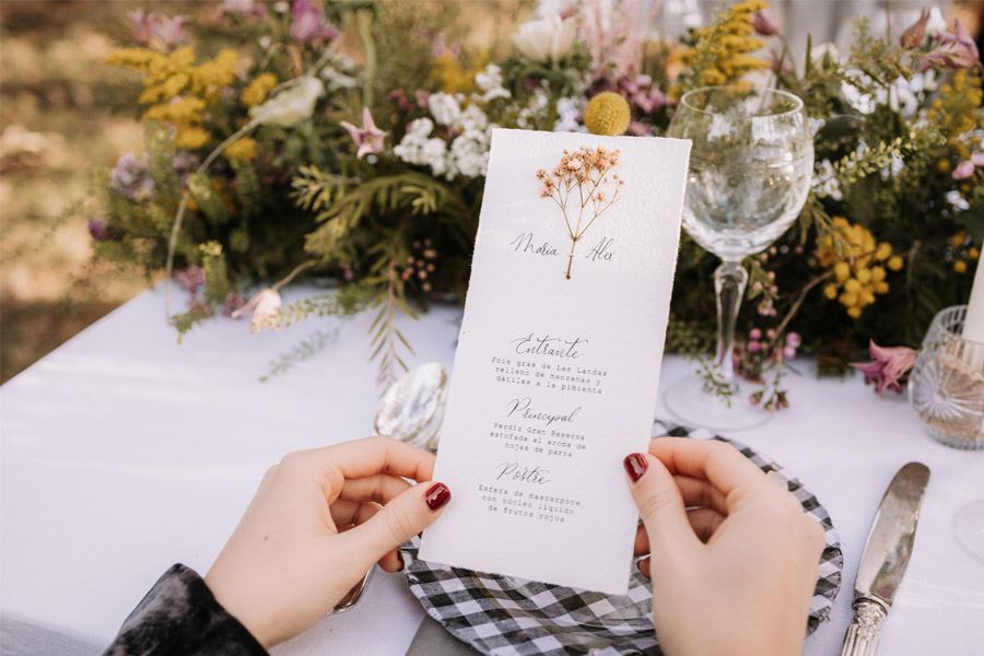 Un paisaje de cuento en pleno monte vasco con unas impresionantes vistas al mar, es el idílico escenario de una pareja de enamorados que deciden casarse en la intimidad. Una opción que está proliferando este año con motivo de las restricciones por la pandemia y que tiene muchas cosas buenas. Una de las ventajas de organizar una boda íntima, con pocos invitados, es que puedes destinar gran parte de tu presupuesto a la decoración y a los pequeños detalles, también puedes elegir con mayor facilidad casarte en espacios naturales, que son más difíciles de gestionar cuando el número de invitados es mayor, y además, puedes dedicar más tiempo de calidad a tus invitados y eso siempre es algo que se agradece muchísimo en un día tan especial. El equipo de Martina por el Norte está detrás de esta maravilla de sesión. Para realizarla crearon una decoración que combina el estilo campestre con un toque de elegancia, una fusión muy en tendencia ideal para bodas modernas. La pareja lee sus votos en total libertad, rodeados de verde, mar, cielo y ese aire del norte que acompaña su amor entre susurros. Tras la lectura se dirigen al espacio reservado para el banquete, en el que les esperan sus invitados alrededor de una mesa vestida con mantelería de lino y vajilla de estampado vichy, decorada en su parte central por un camino de musgo y flores silvestres que le da el toque rústico y de color. Sobre ella destaca una elegante lámpara de araña, tiñendo de romanticismo el ambiente. El seating plan recrea una bonita historia. La pareja llevaba cinco años a distancia y cada mes se enviaban libros por correo, por eso en la decoración del seating plan se utilizaron libros antiguos y flores sobre un mueble de estilo afrancesado. En cuanto al estilismo, destaca el contraste de la elegancia de los novios en pleno bosque. La diseñadora María Gadea fue la encargada de vestir a la novia con un precioso vestido, sencillo y delicado, como complemento lució una pulsera, pendientes y anillo de circonitas plateadas que dieron brillo a su outfit. Se confeccionaron dos ramos, uno de mimosas con el color tendencia de este año y otro con flores rosas de estilo más romántico pero ambos siguiendo la misa línea decorativa general. El novio, vestido con traje oscuro, sin corbata y con tirantes, desprendía elegancia y naturalidad a partes iguales. Tras el banquete, al caer la tarde, la pareja se dirigió de nuevo al punto más alto del monte, donde el atardecer caía sobre el mar tiñendo de rosa un futuro anhelado que por fin se había hecho realidad.