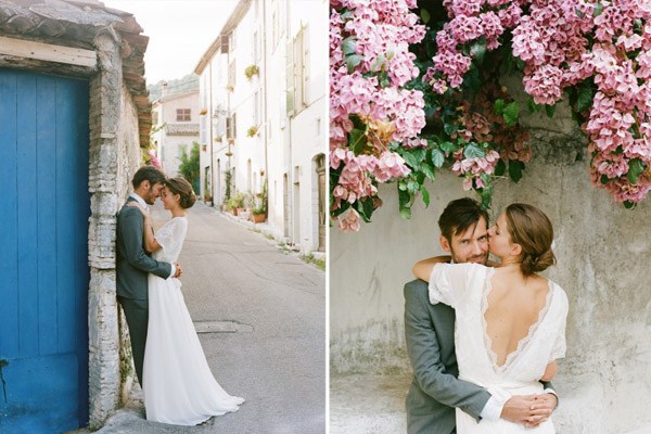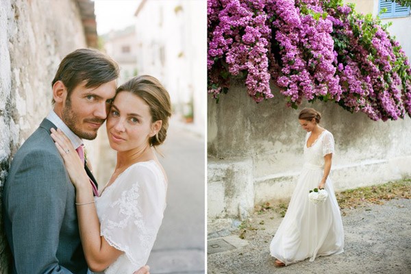 Hay bodas que llaman la atención desde el primer momento y eso creo que es mérito tanto de los novios o los organizadores de la boda como del fotógrafo que sabe captar esos momentos mágicos que surgen de un instante tremendamente feliz. No es fácil captar las emociones pero Tec Petaja sabe hacerlo como pocos, su atención agudiza el detalle de lo más insignificante dotándole de un protagonismo singular y aportando una visión única en sus imágenes. Estoy segura de que mucho tienen que ver sus viajes por el Asia central y sus vivencias en Indiana y Hawai. A apenas 15 kilómetros de Niza, en un entorno ideal entre el mar y la montaña, se encuentra La Colle-sur-Loup, un pequeño pueblo provenzal con callejuelas de piedra, pequeñas plazas, viejos pozos, llamativas puertas y dinteles y numerosas tiendas de antigüedades. El lugar soñado por Catherine y Erik para celebrar su boda, una boda de aire mediterráneo con toques afrancesados que la hace especialmente perfecta. El enlace destaca por la naturalidad de la decoración y de los mínimos detalles, toques apenas invisibles que mezclados con los espacios naturales que la rodean logran crear una atmósfera de frescura que se percibe a través de las imágenes. Ramas de olivo, pequeños recipientes de cristal con flores, coloridas buganvillas y singulares piezas de arte hacen de esta boda la mezcla perfecta entre los pequeños detalles y una espectacular ubicación.
