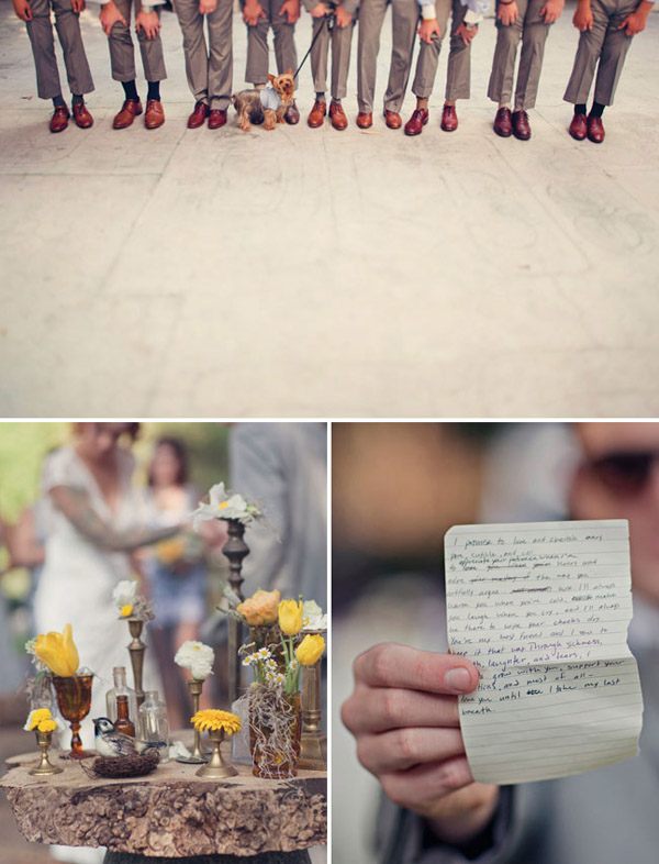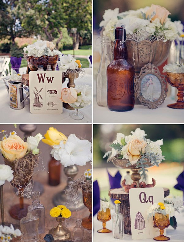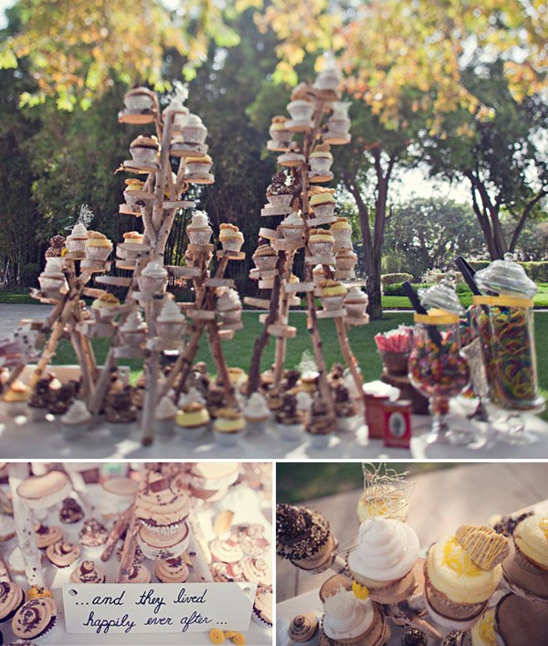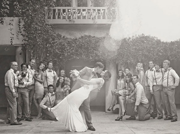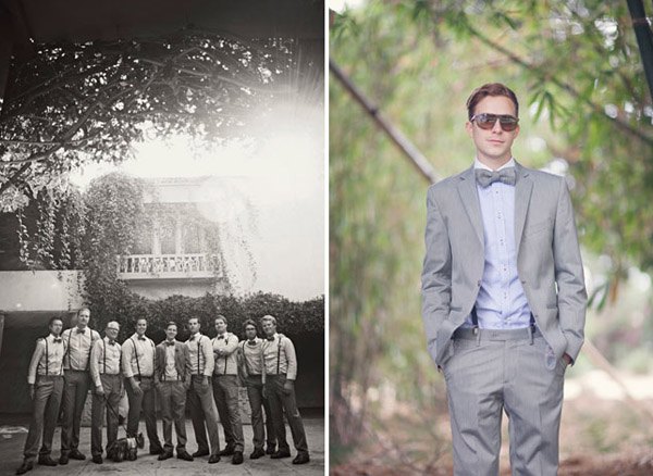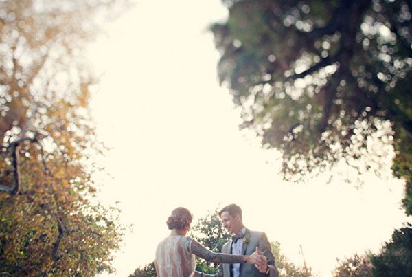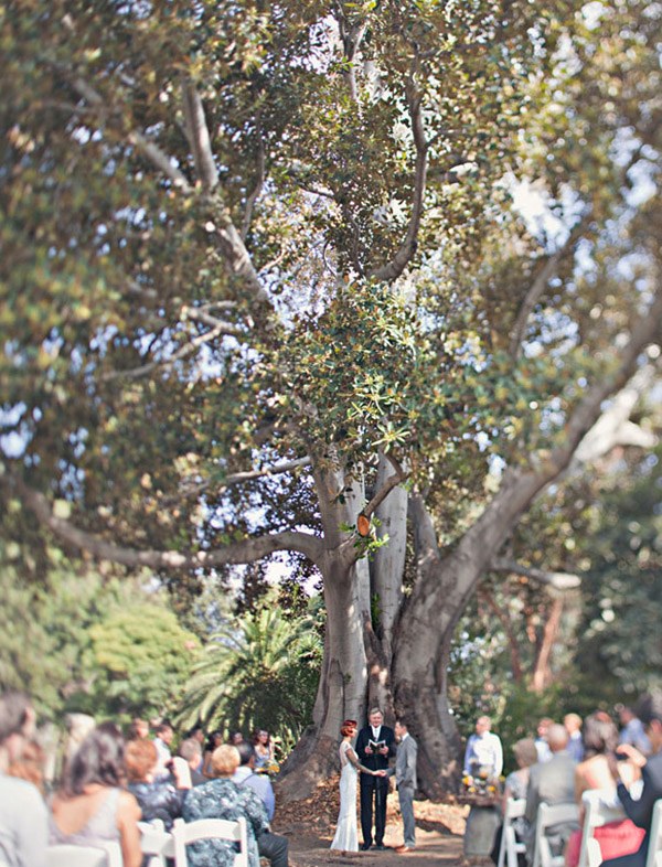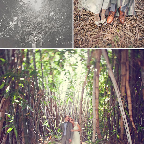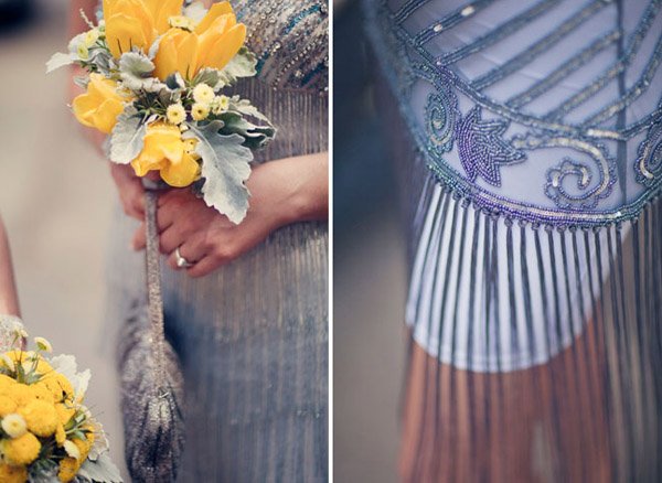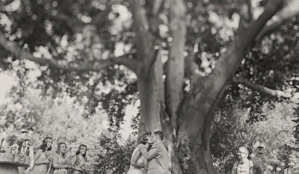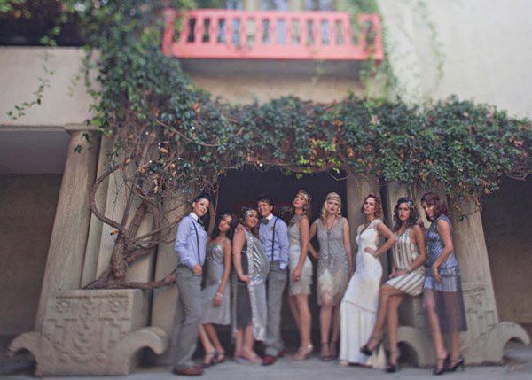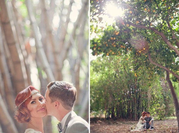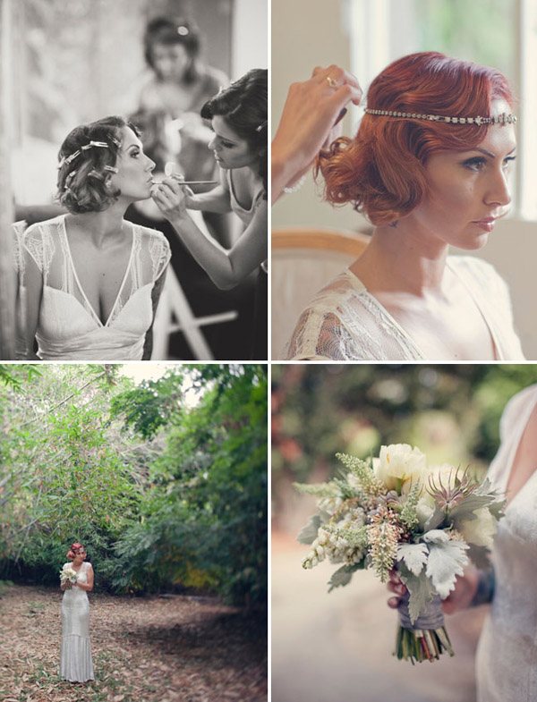 Cuando unimos a un novio escritor con una novia artista y los dos son unos enamorados de lo antiguo y de la estética de lujo y prosperidad americana de finales de siglo, el resultado puede ser una boda como la de Matt y Geneva, al estilo de los locos años 20. Para empezar, el anillo de compromiso de Geneva es precisamente de esa nostálgica década en la que el charleston reinaba en los pubs y todo destilaba glamour y sensualidad. El lugar escogido por los novios para la celebración (Clarke Estate) también fue construido en los años 20, así que no es de extrañar que la boda acabase convirtiéndose en un fiel reflejo de la época. Se dieron el ‘Sí quiero’ bajo un enorme e impresionante árbol situado en medio de un huerto, rodeados de amigos que disfrutaron viéndoles bailar al son de las románticas melodías de Billie Holiday, Frank Sinatra y Fred Astaire, ¿puede haber algo más sensual? Me ha gustado especialmente el estilismo de la novia, ya sabéis que las ondas al agua son uno de mis peinados fetiche, además el color rojizo del pelo y el corte recto a media melena le da todavía un aire más retro. Las damas de honor de Geneva parecen artistas recién salidas del musical Cabaret con sus vestidos de flecos y sus brillantes complementos, están ideales con la cinta en el pelo similar a la de la novia. Para la decoración se ha jugado mucho con el ambiente rústico, el sitting de mesas se ha colgado en un par de contraventanas antiguas de madera y los centros de mesa tienen como base unos pequeños troncos de árbol, un elemento muy presente también en el buffet de postres, formado por ramas de árbol de las que salen deliciosos cupcakes como si de frutos ‘prohibidos’ se tratara. Y otro detalle que no puedo dejar de mencionar, las fotografías hechas con Polaroid. ¡Son tan, tan retro! Si queréis una boda así pero no tenéis ni el tiempo ni la imaginación que requiere, el secreto según la novia consiste en ‘contratar a personas creativas para conseguir realmente lo que quieres’. ¡Totalmente de acuerdo Geneva!
