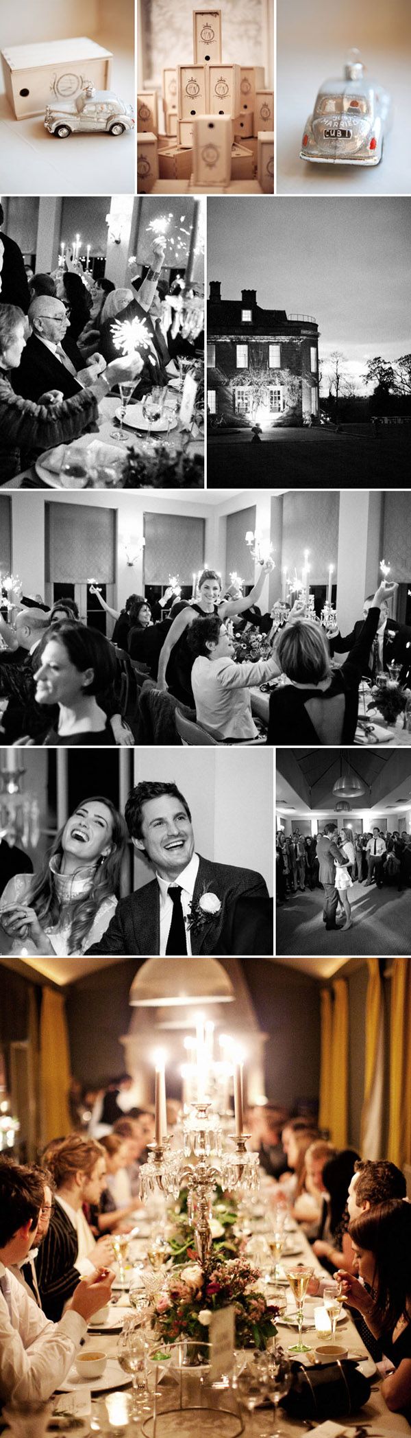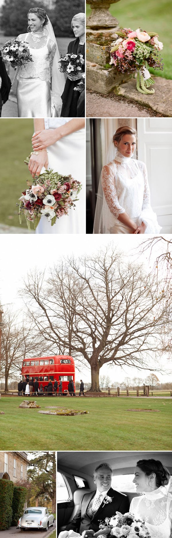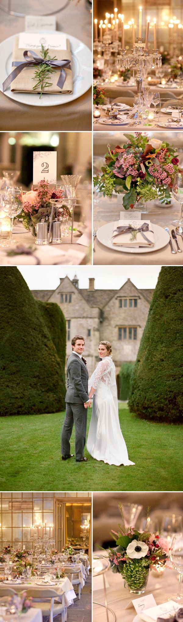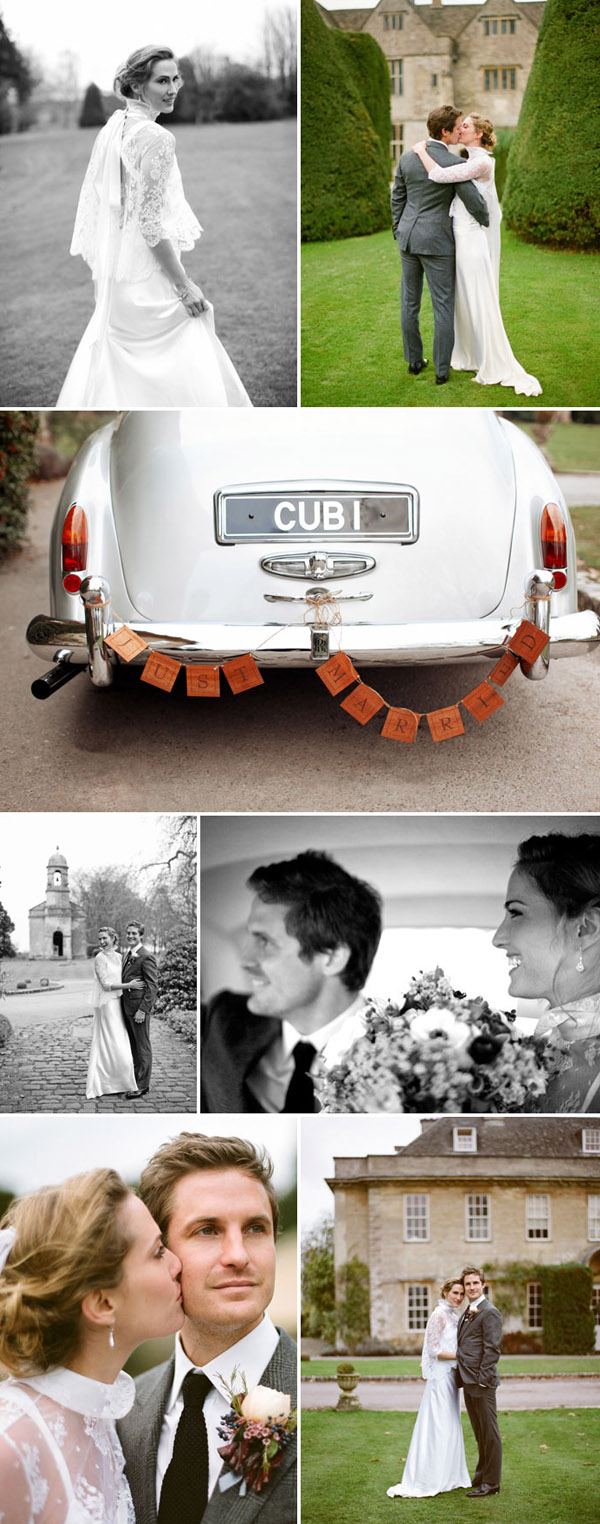 Hace unos días estuve en un pueblecito del interior en el que tuve la sensación de que el tiempo se había detenido, suele pasarme eso cuando llevo demasiados días pisando asfalto. A pesar de la época y de las altas temperaturas que durante el día todavía nos acompañan, por la noche se notaba el aire fresco de la montaña y apetecía ponerse algo de abrigo y sentarse a los pies de la chimenea. La boda de hoy me ha transmitido esa sensación de calidez que da el otoño en sus inicios, cuando todavía no han caído los fríos del invierno y aún se puede pasear sobre la hierba mojada. Heather y Neal eligieron para celebrar su boda la majestuosidad de Babington House, una casa señorial del siglo XVIII situada en Somerset (Inglaterra). Heather estaba preciosa con su espectacular vestido de novia de Delphine Manivet, me gusta muchísimo el trabajo de esta diseñadora, son tan románticos sus diseños… Neal se decantó por el diseñador Tom Ford y escogió un traje de corte inglés en tono gris, elegante pero con cierto aire informal. La ceremonia se celebró en la Iglesia de St. Andrew, construida en 1446 en la ciudad de Mells, la quintaesencia de pueblecito inglés, y para el traslado de los invitados utilizaron el típico autobús londinense de dos pisos, ¿puede haber algo más british? La novia llegó acompañada de su padrino a bordo de un impresionante Rolls Royce que perteneció a su abuelo, luciendo entre sus manos un precioso ramo de flores cuidadosamente escogidas para la ocasión. La decoración de la boda está perfectamente conseguida y estudiada, los centros de mesa siguen la línea del bouquet floral de la novia, las mesas ganan presencia al estar vestidas con doble mantelería y los fastuosos candelabros de plata dan sensación de majestuosidad, aunque particularmente destacaría todos esos juegos de cristales y transparencias que junto a la luz de las velas transforman la atmósfera consiguiendo un ambiente realmente acogedor. Como apunte final me ha parecido súper curioso y muy original el detalle para los invitados, una réplica del Rolls Royce de los novios con forma de adorno navideño para colgar en el árbol. Una bonita forma de que todos los invitados recuerden ese día cada Navidad.