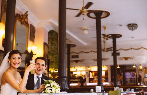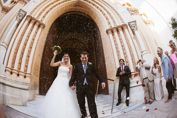 Últimamente no dejo de encontrarme con parejas donde uno de los dos no es español y la verdad es que es algo que me gusta porque soy de las que piensa que la mezcla de culturas y de idiomas enriquece muchísimo, no sólo a la pareja sino también a los amigos, a la familia y más adelante a los hijos. El caso de hoy es uno de ellos aunque Irene e Iván sí que comparten el mismo idioma. Ella es de Costa Rica y él malagueño y se conocieron en Estados Unidos, donde Iván estaba estudiando un Máster. Tras meses de viajes, reencuentros y despedidas, decidieron casarse y venirse a vivir a Madrid, así que para la boda tuvieron que movilizar a toda la familia de Irene desde Costa Rica, sin duda una experiencia inolvidable para todos y una mezcla de culturas que más adelante, en la ceremonia, daría paso a un alegre carnaval lleno de música, máscaras y colores, una costumbre muy típica de las bodas en Costa Rica y otros países de Latinoamérica en la que celebran por todo lo alto la unión de dos personas. Los dos son bastante clásicos por lo que siempre habían soñado con una boda muy romántica, con el color blanco como protagonista. La pedida ya fue de lo más especial y tuvo lugar un año antes frente al castillo de Eilean Donan, en Escocia, con anillo de Tiffany incluido. Irene lució un precioso modelo de Pronovias con pendientes de Swarovski y zapatos de Purificación García, Iván se decidió por Fuentecapala. El ramo de la novia se confeccionó con fresias blancas, una flor que despide un olor muy dulce y delicado. La ceremonia se celebró en La Iglesia del Sagrado Corazón de Málaga y la cena y fiesta posterior en la Hacienda del Álamo. La verdad es que fue una boda con mucho DIY, donde los novios elaboraron juntos muchos de los detalles, incluso Iván se aventuró y sorprendió a Irene con un árbol de los deseos que realizó unos días antes de la boda con la ayuda de su padre. La tarta también fue elaborada entre Irene, su madre y su hermana y se inspiró en un modelo de Cakes Haute Couture que le había robado el corazón a Irene pero que por cuestiones de logística no pudo conseguir, así que se pusieron las tres manos a la obra y crearon una preciosa tarta de boda con flores blancas de ranúnculo y hortensias. Tras la tarta, se dio paso a la fiesta final, que como ya os he comentado antes, se transformó en un gran Carnaval con máscaras traídas expresamente por la madre de la novia desde Costa Rica, donde todos rieron y bailaron sin descanso hasta el amanecer.