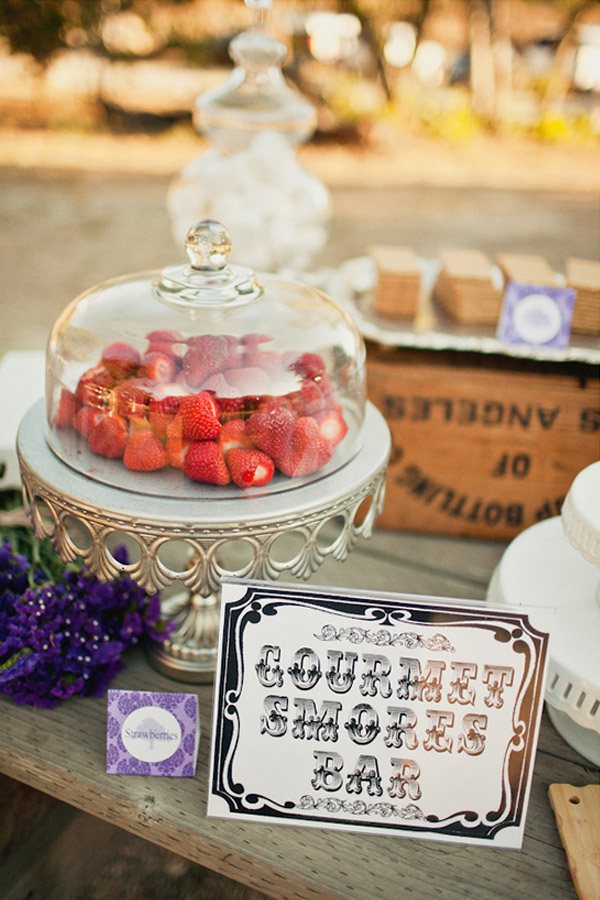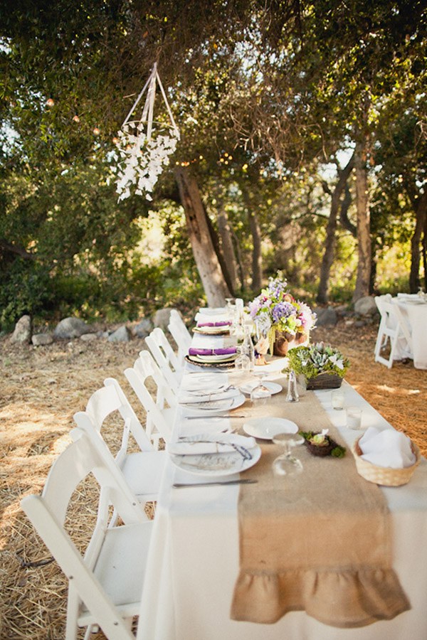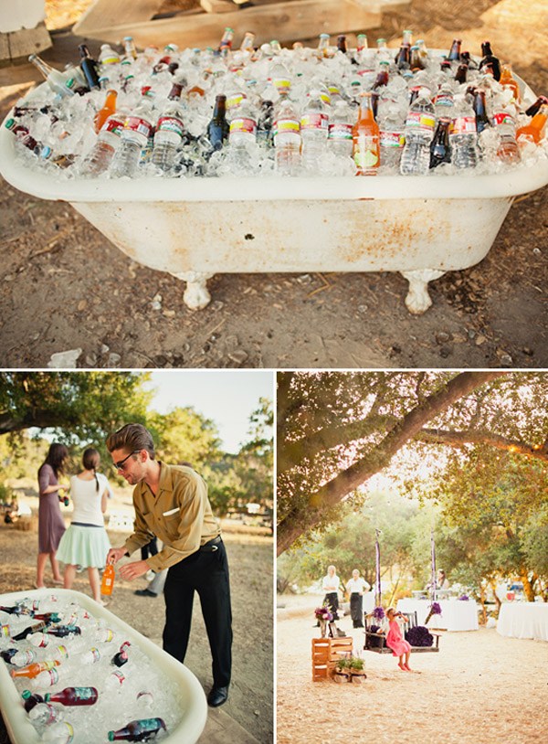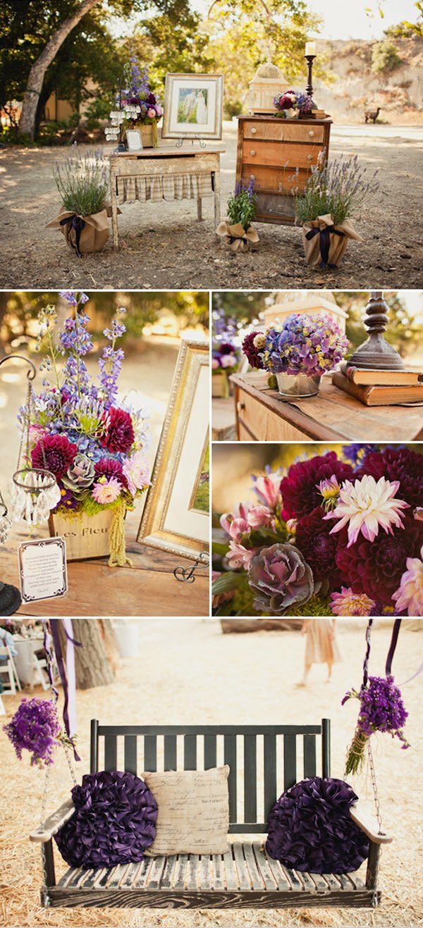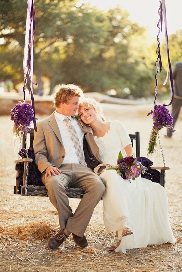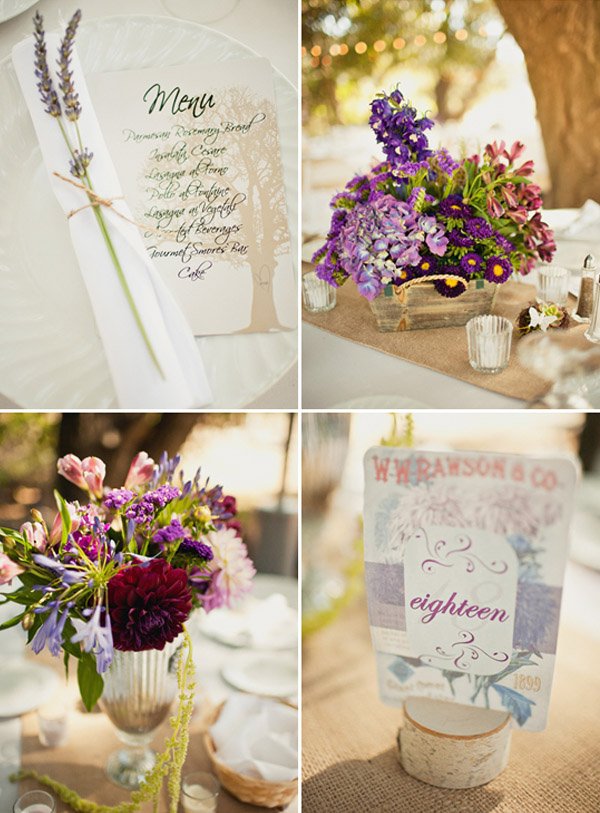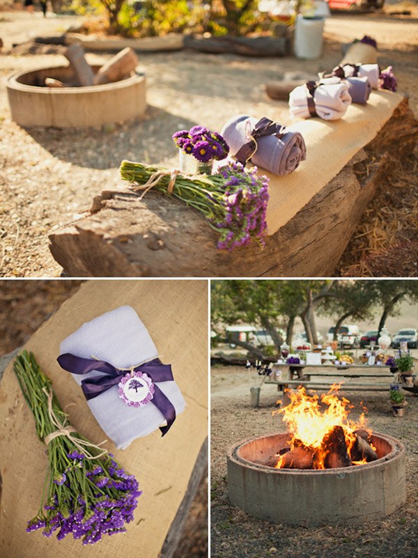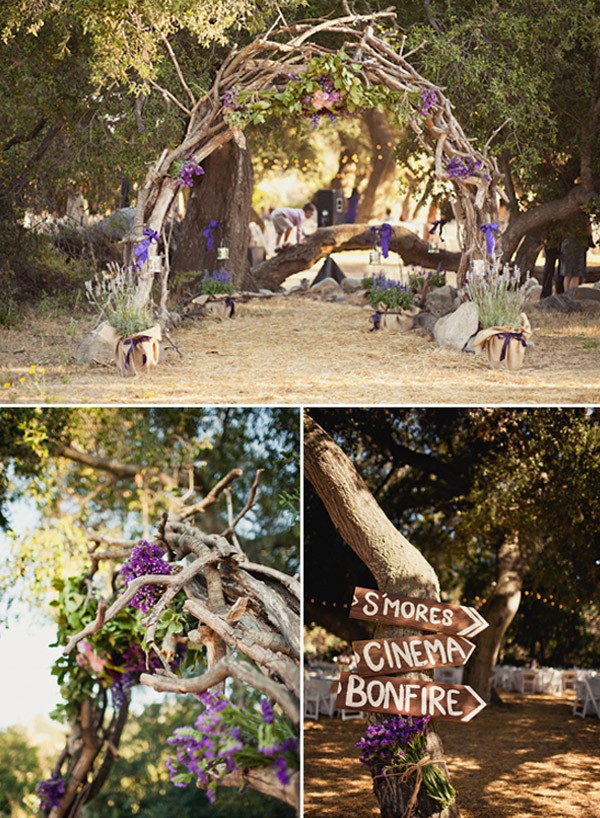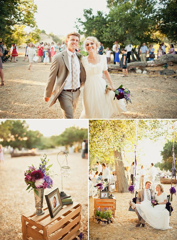Hace ya casi dos años, cuando me encontraba inundada de miles de cosas que organizar para mi boda, recuerdo que me pasaba horas analizando al detalle todas las fotografías que componían cualquier reportaje de boda que llamase mi atención. Me gustaba observar todo con detenimiento, me podía tirar más de 10 minutos con una sola fotografía, a veces hasta las ampliaba al máximo para ver aquellas flores que había colgadas en aquel árbol del fondo de la imagen o el tocado que llevaba una de las invitadas que estaba apoyada en el buffet de bebidas en un tercer plano difuminado. Como sé que muchas de las que me seguís sois muy parecidas a mí, hoy os traigo una boda llena de detalles. Veréis que me he querido centrar precisamente en eso, por eso la mayoría de las fotografías son de elementos de la decoración más que de los novios. Podréis sacar miles de ideas porque la verdad es que estos novios han pensado en todo y en todos. Kasey y Didi eligieron una boda rústica al aire libre, de las que a mí me gustan. El primer detalle que quiero destacar es el arco de entrada a la ceremonia, hecho con ramas de árboles, lo que hace que se integre en el ambiente a la perfección. A mí me ha parecido precioso, igual que el columpio adornado con flores. Toda la decoración floral se ha realizado en tonalidades liláceas con diferentes tipos de flores como las mini coles, las hortensias o los crisantemos. La idea de forrar las macetas con tela de arpillería o de utilizar muebles y elementos decorativos antiguos también es otro detalle muy rústico que da un aire más silvestre a la boda, el camino de mesa se ha confeccionado también con la misma tela para crear uniformidad. Y ahora os he de confesar algo… ¡muero por conseguir una bañera antigua como la que han utilizado para enfriar las bebidas! La tengo apuntada en mi lista de ‘objetos para mi nueva casa’, aunque tarde 20 años en mudarme. Otra idea muy americana que me encanta es la de poner un ‘Gourmet Smore Bar’, como ya sabréis el Smore es un postre hecho en una fogata nocturna, es algo muy tradicional en EEUU y Canadá y Kasey y Didi no quisieron que faltase esta costumbre en su boda, para ello colocaron varios troncos alrededor del fuego para que sus invitados pudieran sentarse a descansar o reponer fuerzas para seguir disfrutando del día. Todo cuidadosamente organizado y pensado, hasta dejaron unas mantitas por si tenían frío ya que a esas horas de la noche suele refrescar. Y, por supuesto, también pensaron en los niños. Les montaron un cine al aire libre con películas infantiles, balas de paja y hasta palomitas de maíz, ¿no os parece genial? Pero mejor que sigáis vosotras mismas descubriendo cada uno de los detalles porque hay tantos que seguro que alguno me dejo. ¡Que disfrutéis!