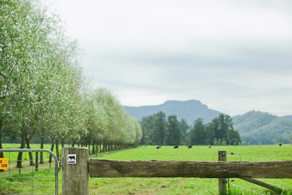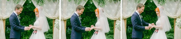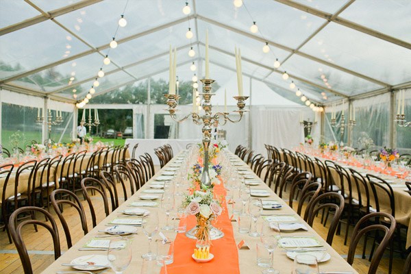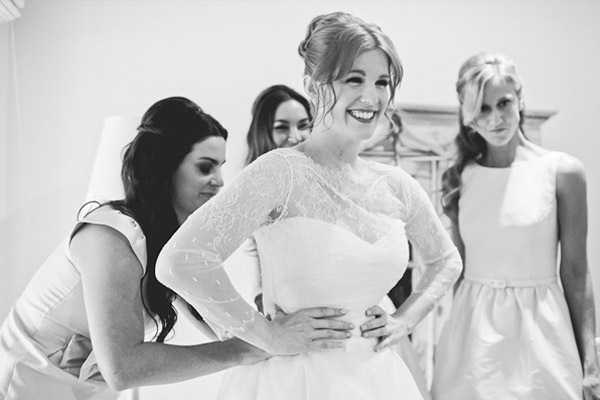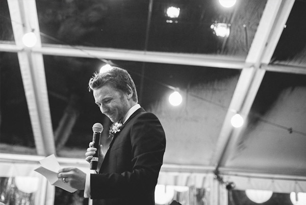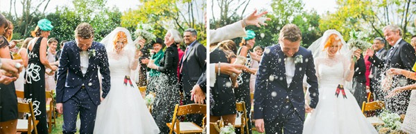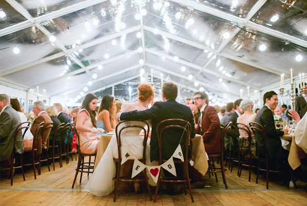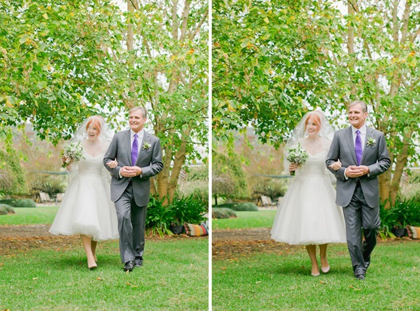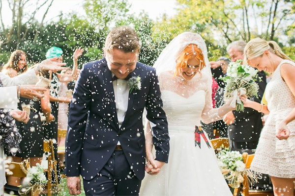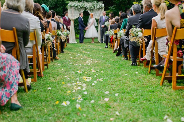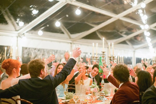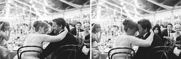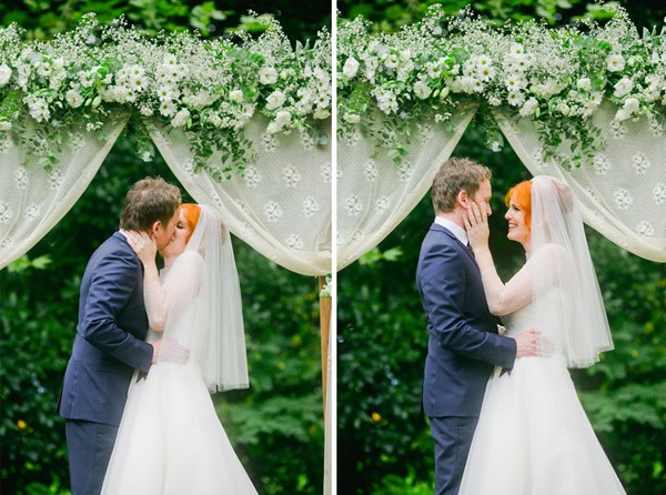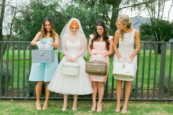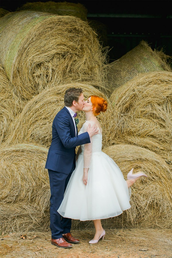 Lo primero que llamó mi atención de esta boda fue, sin lugar a dudas, la novia. El color de su pelo, su sonrisa y su naturalidad a la hora de posar dio lugar a un reportaje precioso como veréis a continuación. La pareja se casó en Melross, una finca situada en Kangaroo Valley (Australia), aunque la boda tuvo reminiscencias escocesas, por ser Escocia la tierra natal del novio. Todos los detalles, tanto el estilismo de la novia con su vestido de alta costura como sus damas de honor, luciendo guantes cortos y unos preciosos neceseres rígidos, recuerdan los maravillosos años 50, aquella época del ‘Avón llama a su puerta’ o de series que mostraban el sueño americano. La verdad es que cada vez me gustan más los vestidos de novia cortos, en este caso la vaporosa falda de tul junto con la blonda de la parte superior del vestido le da a Kate un aire todavía más chic que contrasta sutilmente con el look algo más desenfadado de los testigos del novio. Toda la decoración sigue la misma línea de inspiración, las cortinas caladas del fondo de ceremonia, las fotografías antiguas en blanco y negro o la máquina de escribir tan típica de aquella época. La zona de jardín, destinada al aperitivo, se decoró con grandes globos de luz de papel de arroz en tonalidades naranjas y malvas y gracias a la carpa transparente consiguieron que los invitados tuvieran la sensación de estar cenando al aire libre. En el interior de la carpa, iluminada por pequeñas lucecitas de verbena, se colocaron grandes mesas imperiales cubiertas con mantelería confeccionada en tela de arpillera y presididas por enormes candelabros plateados combinados con elementos más rústicos, como pequeños recipientes de cristal decorados con flores. Las sillas de madera, que me recuerdan las que había antiguamente en algunas cafeterías, completan la decoración otorgando a la estancia un aire campestre y desenfadado. Y mención especial para las fotos en el granero… Ya sabéis que siento debilidad por las alpacas!