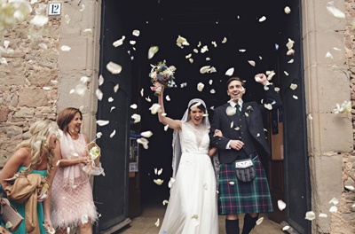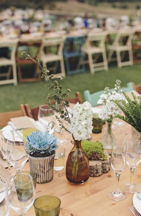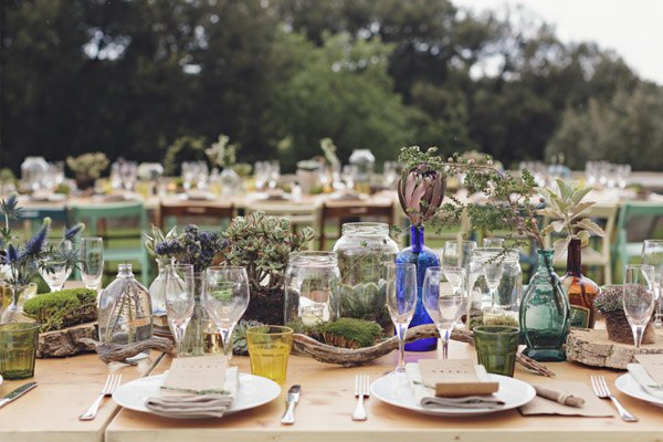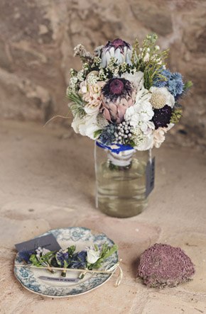 La boda de Maite y Allan es una de esas bodas románticas e inspiradoras de las que tanto nos gustan. Una boda celebrada en las montañas de un precioso pueblo catalán, Perafita, situado en la comarca de Osona. Los verdes prados y la frondosa vegetación protagonizan un ambiente de inspiración botánica con aire internacional ya que la novia es de origen catalán-puertoriqueño y el novio galés. Cuando decidieron casarse vivían en Chicago pero en la actualidad residen en Londres, así que los invitados vinieron de distintas partes del mundo para compartir con la pareja su momento más feliz. Los dos provienen del mundo del diseño por lo que ellos mismos diseñaron la invitación, con las flores nacionales de Puerto Rico y de Gales. Hay detalles que me han encantado, como las batas con estampado de flores hechas en la india y que compartían tanto la novia como sus damas de honor en el momento de vestirse o el precioso bouquet floral de la novia realizado por Flowers by Bornay y del que colgaba una pequeña foto de la boda de sus padres. El vestido de Ecliptica, los zapatos I do Pumps de Seychelles y un velo antiguo de herencia familiar, formaban el estilismo de Maite y un tradicional traje galés confeccionado a medida el de Allan. La ceremonia se celebró en la Iglesia de Perafita y la cena, al aire libre, en una típica masía catalana con paredes de piedra y amplios jardines. De toda la decoración se encargó Laura, de Fueron Felices, una de las personas con más gusto que conozco. Se colocaron varias mesas imperiales sin vestir de madera maciza con sillas de distintos colores y como centros de mesa vasos de cristal de colores, algunos con aceite y velas de las que antiguamente usaban nuestros abuelos combinadas con flores silvestres y ramas aromáticas sobre el menú. Unas guirnaldas confeccionadas con libros antiguos de botánica y menaje de hierro esmaltado acompañaron un menú muy mediterráneo con una paella vegetal cocinada en directo y buffets de quesos y embutidos con mermeladas artesanas y la presencia de Don Ostra, hicieron las delicias de los invitados. Tras la cena, vinieron los discursos, las risas y las lágrimas, el photobooth confeccionado con una tela de toldo antiguo con estampado de hojas y flores, los regalos para los invitados unas velitas en cajas de latón y también las sorpresas, ya que los amigos de Chicago de los novios les sorprendieron con un concierto en directo. Un emocionante y divertido fin de fiesta a un día repleto de emociones.