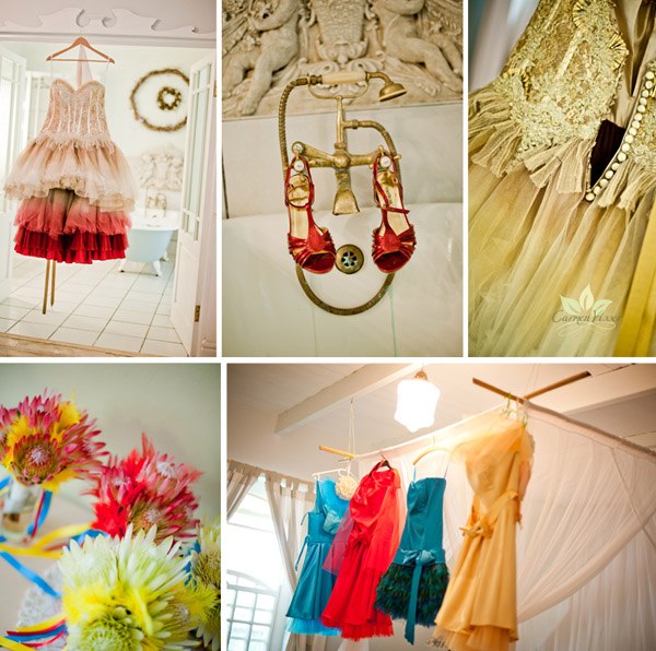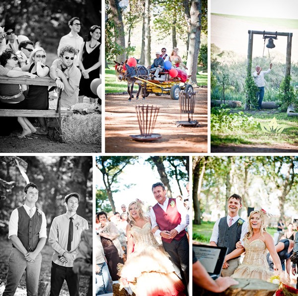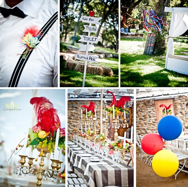 Dentro de pocos días el Carnaval irrumpirá en las calles de pueblos y ciudades y el ambiente festivo nos inundará, dando una tregua al invierno y a las preocupaciones. Por eso hoy he querido mostraros una boda muy divertida, llena de colorido, con algunos detalles de rock and roll y basada en la tradición carnavalesca. Melissa y Arnold se conocieron, como tantos adolescentes, en una fiesta en la playa en un pueblecito costero donde sus padres pasaban los veranos. Por las tardes solían sentarse en las rocas para ver el atardecer. Pero los veranos pasan, los niños se hacen adultos y las vacaciones quedan en un bonito recuerdo. Años más tarde volvieron a encontrarse, habían crecido, estaban solteros y en su primera cita, Melissa supo que quería pasar el resto de su vida junto a él. Y, como no podía ser de otra manera, Arnold le propuso matrimonio en las mismas rocas donde solían sentarse a ver la puesta de sol cuando eran niños. Ambos querían una boda que huyera de lo tradicional, a los dos les encanta la vida al aire libre, las acampadas y la naturaleza, así que si algo tenían claro es que su boda sería en el exterior y en un entorno natural. Estaban entusiasmados con la idea de celebrar una gran fiesta de carnaval como las que antiguamente se celebraban en los pueblos, como si de una gran feria se tratara, por eso decoraron el espacio con puestos de cerveza de jengibre, algodón de azúcar, palomitas de maíz y hasta con un camión de helados. Repartieron mantas de pic-nic por el bosque para que todos los invitados pudieran sentarse si lo deseaban y amenizaron la velada con diferentes juegos de exterior distribuidos por el campo. La pista de baile también se montó al aire libre, bajo las estrellas, junto al bosque iluminado con antorchas y rodeada de pequeñas hogueras. Uno de los elementos más espectaculares fue el vestido de la novia, que se personalizó a la medida de sus gustos, ella quería sentirse como una antigua princesa, como una reina de carnaval, no quería verse como la típica novia, quería algo divertido y sorprendente, y lo consiguió con un cuerpo de corpiño y un tul de color rojo degradado, además le confeccionaron dos vestidos en uno ya que para la fiesta pudo quitarse la parte baja de la falda de manera que el aspecto del vestido cambió totalmente al acortarse, permitiéndole moverse y bailar sin descanso. Antes de acabar me gustaría dejaros con el consejo que da Melissa a las futuras novias y que me ha parecido importantísimo porque no lo solemos tener presente cuando llega el día de nuestra boda debido a la emoción y a los nervios, ella nos recomienda retirarnos unos minutos con nuestra pareja a un lugar apartado donde poder ver todo lo que está sucediendo y simplemente disfrutar de ese momento. Así de sencillo y así de emocionante, os aseguro que será una imagen que se os quedará grabada de por vida.