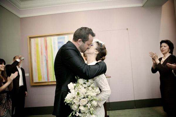 ¿Quién dijo que casarse en un juzgado no era romántico? Viendo las fotos de la boda de Nicole y Anthony seguro que cambiáis de idea. Los novios quisieron una boda sencilla, con pocos invitados, tan solo la familia y los amigos más allegados. Habiendo Amor, quizás lo que menos les interesaba era la ceremonia, así que decidieron casarse en una sala del Ayuntamiento de Nueva York en una boda elegante, sencilla y discreta. El estilo retro que inspira las fotografías viene remarcado por el vestido y el tocado de la novia, así como por el impresionante coche de época, también de su propiedad. Fijaos en el tacón de los zapatos y en el largo, o mejor el corto, del vestido, una combinación perfecta que, junto con el velo birdcage pone el punto chic al estilismo de Nicole. Tras la ceremonia, el puente de Brooklyn y sus alrededores se convirtieron en el escenario perfecto para el reportaje fotográfico posterior. Y una vez acabada la sesión de fotos, finalizaron el enlace con un sencillo brunch de mediodía. Como anécdota curiosa y, realmente algo increíble, os diré que la novia compró su vestido la noche antes de la boda. Se arriesgó pero acertó, ¿no creéis?
