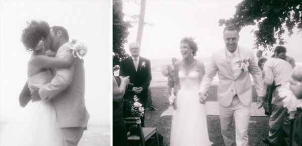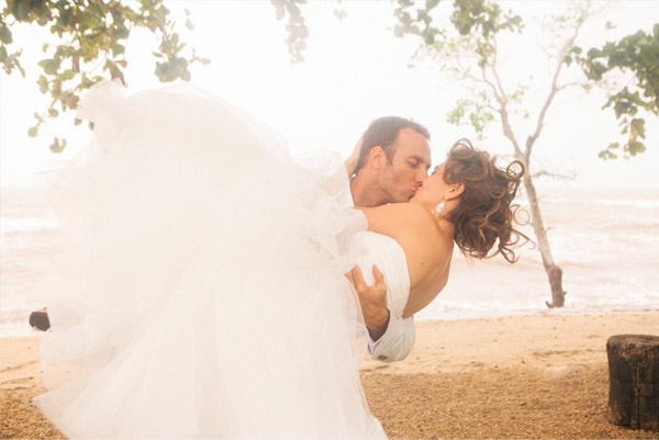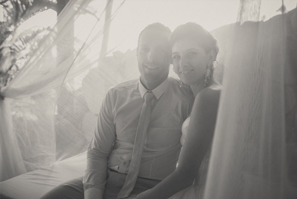 Nicole y Troy son una pareja australiana que reside en Camboya desde hace años. Hasta allí les llevó su enorme y altruista corazón, ya que ambos trabajan prestando servicios a sendas ONG’s. Nicole trabaja con mujeres que han escapado de la esclavitud sexual y Troy ayuda a comunidades a crear sistemas de educación y salud. Cuando vi sus fotografías de boda me enamoré de ellos pero cuando conocí su historia me robaron el corazón para siempre. Imaginaos lo implicados que están ayudando a los demás que dos días antes de la boda hicieron un tour con todos los invitados para ver el estado de los proyectos de Troy. Realmente admirable! Su boda la celebraron en Kep, un pueblecito de la costa de Camboya famoso por sus cangrejos frescos que se pescan y se sirven directamente en pequeños restaurantes junto al mar. Kep es un lugar muy especial para ellos ya que allí fue donde se dieron su primer beso y donde Troy le pidió matrimonio a Nicole. Que la pareja estaba predestinada lo supo enseguida una amiga de Troy, cuando éste estaba en Australia lo llamó por teléfono y le dijo: ‘Tienes que volver a Camboya ya porque acabo de conocer a tu futura esposa’. Troy no se lo pensó dos veces y una semana más tarde estaba en Camboya conociendo a Nicole. Decidieron casarse en el resort Knai Bang Chatt, cuya traducción literal es ‘Arco iris que rodea el sol’ y en la filosofía budista simboliza el halo alrededor de la cabeza de Buda, por esa razón el resort fue construido como un refugio exclusivo para proteger y albergar a sus visitantes. Una villa colonial restaurada siguiendo un estilo muy personal que da importancia a la simplicidad rústica así como a la elegancia y belleza de la imperfección, tal como rige la filosofía japonesa de Wabi Sabi. No podía ser de otra manera tratándose de esta pareja tan especial. Y antes de acabar os diré que el precioso vestido de Nicole se hizo a medida en un pequeño taller de Phnom Penh, la capital camboyana, llamado TS. Me ha encantado y espero que a vosotras también!