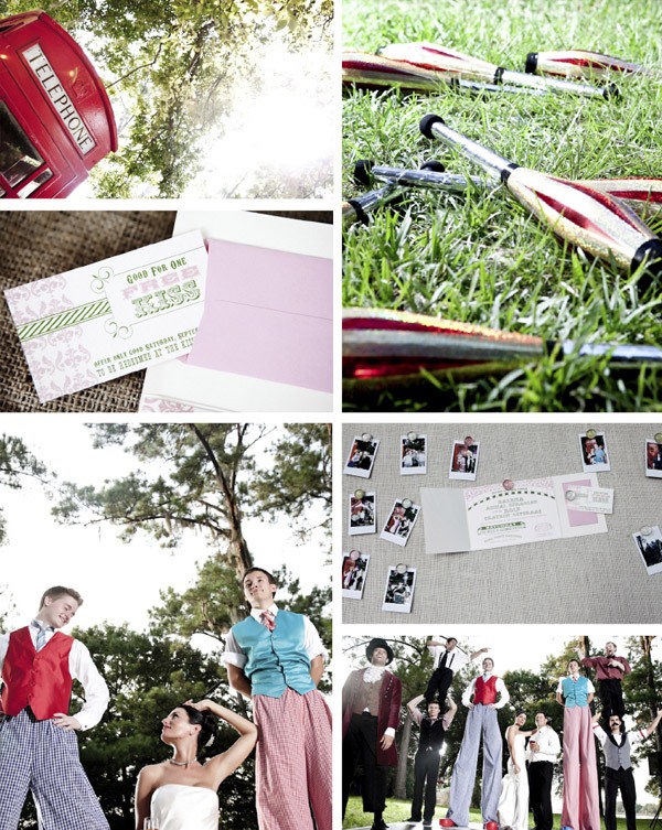 La boda de Salena y Rolf es una de las más divertidas de las que he podido ver hasta el momento. Los dos son grandes amantes del mundo del circo y quisieron que su boda reflejase esa temática, así que imaginaos el resultado. La ceremonia se celebró al aire libre, en unos impresionantes jardines bajo unos árboles milenarios y la novia lució para la ocasión un vestido palabra de honor de corte sirena con velo birdcage y un precioso ramo de hortensias verdes. La decoración, basada en la paleta de colores rosas y verdes, se inspiró en el espectáculo cirquense, empezando por las invitaciones, que se imprimieron como si fueran las tradicionales entradas de circo. La celebración tuvo lugar en el interior de una gran carpa tematizada en la que destacaba la espectacular mantelería y las arañas de cristal que cubrían el techo. El ramo de la novia se colocó en el interior de una gran jaula de oro para que todo el mundo pudiese admirarlo y el momento del aperitivo fue de lo más divertido ya que los camareros sirvieron maní en conos de papel de periódico, algodón de azúcar o palomitas de maíz, típica comida de feria. Los invitados a la boda de Salena y Rolf tuvieron la gran suerte de disfrutar de un espectáculo de circo privado durante toda la noche, con narices de payaso, bigotes alargados, zancudos, malabares, forzudos y no faltó incluso un lanzador de cuchillos que usó al novio como conejillo de indias. El resultado: un día espectacular e inolvidable para todos los que lo vivieron.