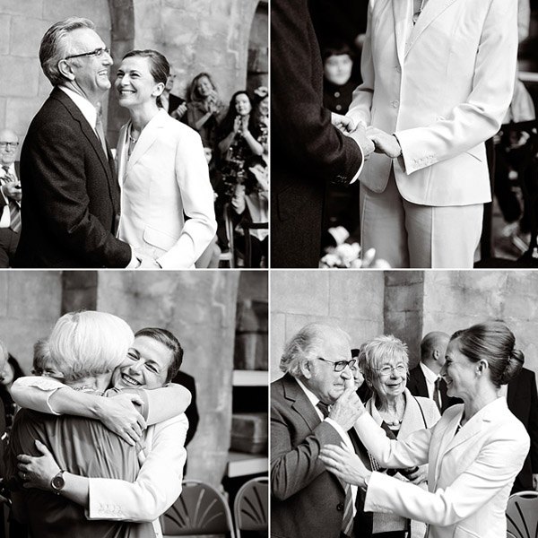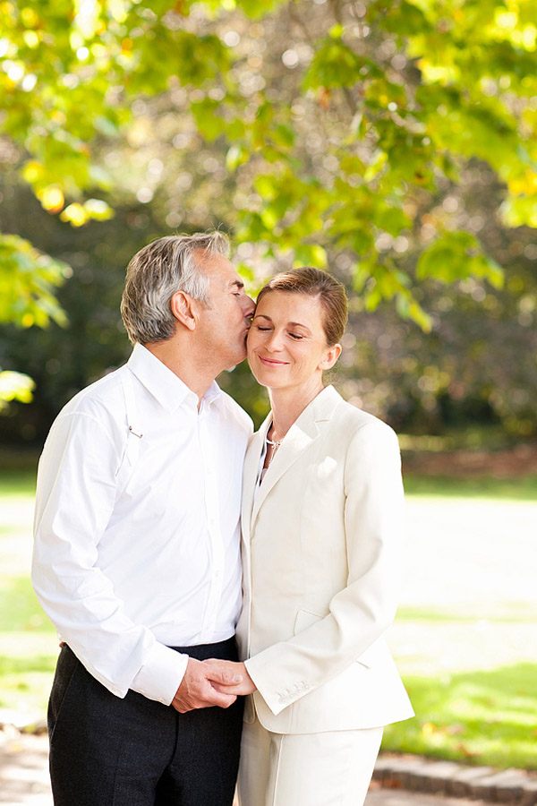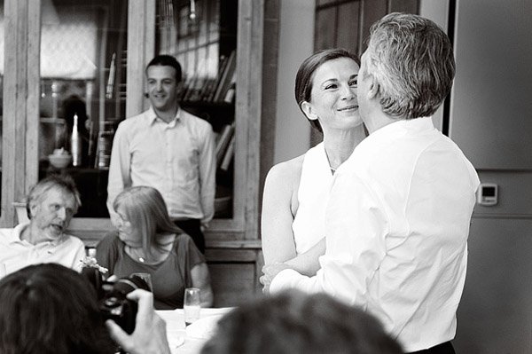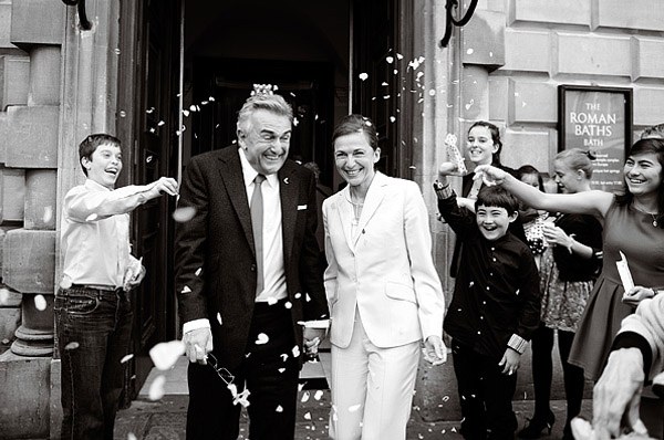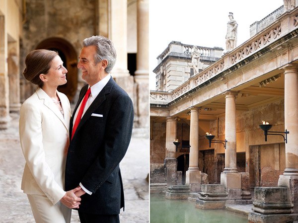 Hace unos días, una de vosotras me comentó que su madre, separada desde hace años de su padre, se había enganchado al blog a raíz de la preparación de la boda de su hija. Cada mañana, lo primero que hace en cuanto se levanta es prepararse un café bien calentito y sentarse frente al ordenador a leer un post y soñar entre nuestras páginas pensando cómo sería su boda si la vida le diera una segunda oportunidad. No es la primera vez que alguien me explica algo así y cada vez que lo oigo no puedo evitar en todas esas personas, jóvenes de espíritu y mucho más de corazón y sentimientos, a las que el destino ha sorprendido en una edad madura con la llegada de un nuevo amor. Muchas de ellas no se atreven a dar el paso de casarse de nuevo quizás por miedo, por el qué dirán o por no volver a equivocarse, pero yo estoy del lado de las valientes, de las que se lían una vez más la manta a la cabeza y deciden celebrar a lo grande la llegada del amor a sus vidas, ¿qué mejor ocasión que esta para celebrar algo realmente importante? El post de hoy es un homenaje a las segundas oportunidades y a las terceras y a las cuartas, porque el amor no sabe de números ni de cantidades. Sarah y Chris son el mejor ejemplo. Son una pareja de guapos maduros que buscaban algo sencillo pero especial para celebrar su unión. Se casaron en Bath (Inglaterra) en unas Termas Romanas porque tal como opina la novia, no había un sitio mejor para tocar música rock a las 8’30h de la mañana que en un espacio patrimonio de la humanidad con más de 2.000 años. Y tuvo razón. Destaca la elegancia de la novia con un exquisito traje-pantalón en tono crema y un sencillo recogido, sin joyas ni accesorios, únicamente un pequeño reloj de muñeca. Tras una íntima ceremonia, los invitados se unieron a los recién casados compartiendo un desayuno regado con champán. Después se dirigieron a los jardines de Bamington House, a disfrutar de un cocktail-almuerzo al aire libre. La sencillez de los novios se refleja en todos los detalles de la boda, como centros de mesa utilizaron antiguos cuencos de cerámica francesa con naranjas naturales y colocaron orquídeas en jarrones de cristal de mercurio. Realmente espectacular fue el pastel de bodas (sobre todo si sois unos amantes de los quesos, como me sucede a mí): una pirámide de diferentes quesos franceses acompañada de higos naturales y uvas. Además, los novios tuvieron el detalle de repartir pequeñas bolsas de yute decoradas con cinta de color naranja para que los invitados se llevasen un ‘recuerdo’ del original pastel y de este modo pudieran seguir degustándolo en su propia casa. La verdad es que todo me ha parecido precioso pero me gustaría que os fijaseis, sobre todo, en la mirada de los novios, irradian felicidad y ese amor que sólo se conoce con el paso de los años… el amor sereno, cuando todavía brillan las pupilas y desaparecen los miedos.