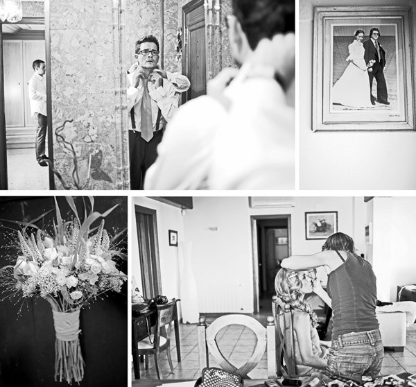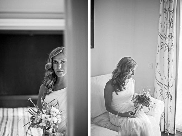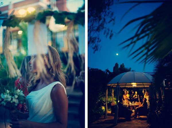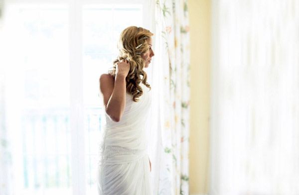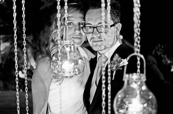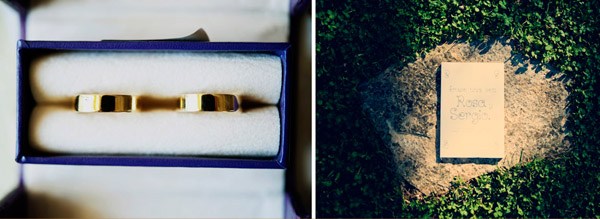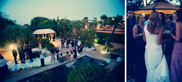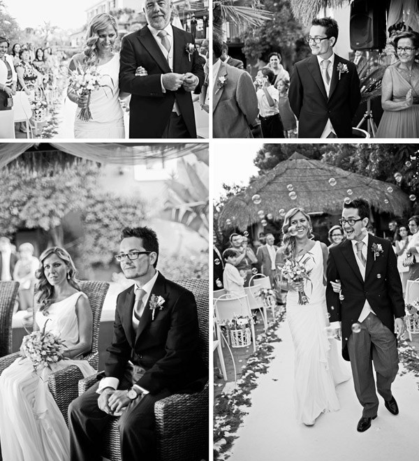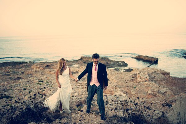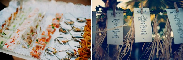 Aunque se conocieron en Salamanca, ciudad donde nació la novia, Sergio y Rosa eligieron las idílicas playas de Denia para darse el ‘sí quiero’. El enlace se celebró en el Hotel les Rotes, situado entre el Parque Natural del Montgó y la Reserva Marina del Cabo de San Antonio, a pocos metros del mar y junto a la cala de la Punta Negra, un bello paraje de aguas transparentes y cristalinas. El vestido de la novia es de Pronovias y como cosa curiosa os diré que ella ya sabía que ese iba a ser su vestido cuando ni tan siquiera lo había visto porque es el tipo de vestido que Rosa siempre imaginó para una boda en la playa, de escote asimétrico, tipo túnica, vaporoso pero con poco volumen, según sus propias palabras ‘ideal para su boda’. De toda la decoración se encargó Jorge Camino, de Flors de la Toscana, los novios ya habían estado en alguna boda decorada por él y les encantó su estilo así que decidieron que también estaría en su boda. Querían algo natural con un toque romántico, con detalles en blanco, poca flor y de aspecto muy silvestre, algo que se adaptase al entorno. La naturalidad era algo que preocupaba especialmente a la novia por eso la elección de su ramo también fue especial, Rosa no quería que fuera un bouquet muy preparado, le gustaba mucho la idea de que pareciera un ramo que podías haber cogido un día de campo en primavera y realmente lo logró. Para el momento de la ceremonia, colocaron en el pasillo una alfombra de color blanco con pétalos y hojas verdes en los laterales, decorada con farolillos de velas y flores que dio un aspecto muy íntimo a ese momento tan especial. Las palmeras que rodeaban el jardín también se decoraron con pequeños recipientes de cristal llenos de flores silvestres que colgaban de sus ramas. En la distribución de las mesas sustituyeron el clásico plano por un montaje al aire libre hecho con cable decorado con hiedra y rafia del que colgaron, con ayuda de unas pinzas de madera, unas hojas con los nombres de los invitados que iban en cada mesa. Y para la salida de los novios se repartieron unos cucuruchos de papel con arroz y pétalos de rosa y varios burbujeros, fue el momento más divertido.