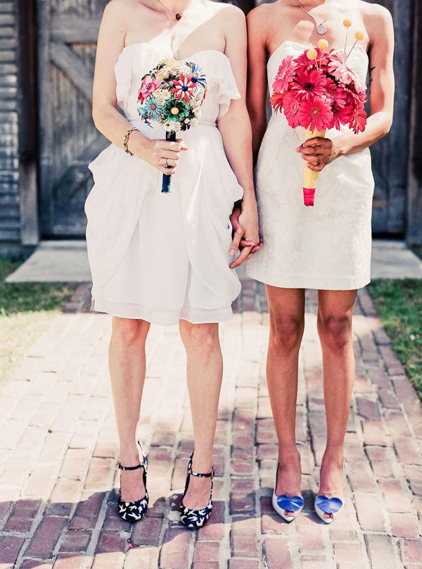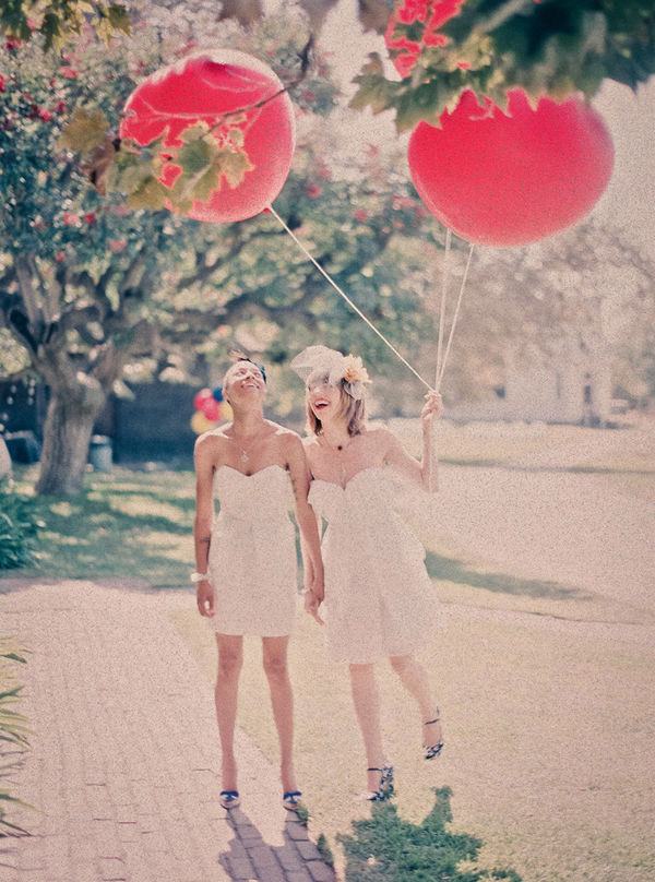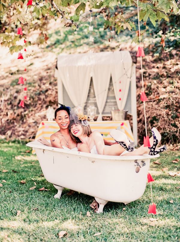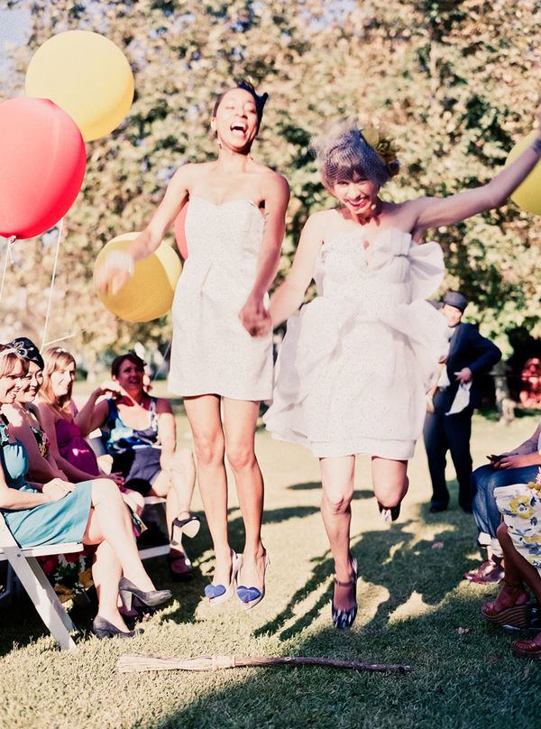 La boda de Tabitha y Cynthia es de ese tipo de bodas en las que se nota la mano femenina en los detalles y en este caso además por partida doble. Desde el principio sabían que querían una boda al aire libre, casual, divertida, con buena comida, buena música y buena gente. En realidad, más que una boda lo que querían era una gran fiesta y las imágenes dan fe de que lo consiguieron. Tras 14 meses de planificación encontraron el lugar ideal, un espacio que representaba la mezcla perfecta entre naturaleza y arquitectura y, encima, en pleno centro de los Ángeles. Todos los detalles se pensaron concienzudamente y fueron realizados por ellas mismas, aunque contaron en todo momento con la ayuda de sus familiares y amigos, que se implicaron en la boda de principio a fin. Las invitaciones hechas a mano, los velos y tocados, las banderas, los centros de mesa, carteles y un sinfín de detalles a cual más original. Durante la ceremonia todos sus invitados se sentaron en círculo en torno a ellas y sus mejores amigos leyeron lecturas personales muy emotivas. Como cosa muy curiosa, al finalizar la ceremonia la pareja de recién casadas ‘saltaron la escoba’. Os lo explico, ‘saltar la escoba’ es una vieja tradición africana que adoptaron los afroamericanos cuando tenían prohibido contraer matrimonio legalmente durante la época de la esclavitud, el ‘saltar la escoba’ era una declaración pública de amor y representaba un acuerdo de matrimonio. ¿No os parece romántico? Espero que disfrutéis las imágenes como las he disfrutado yo porque la felicidad es difícil de retener pero una buena fotografía puede ayudarnos a revivirla en cualquier momento. Por cierto, me gustaría dedicar este post a Miriam y Lola, dos seguidoras de UBO que se casan este año. ¡Felicidades chicas!