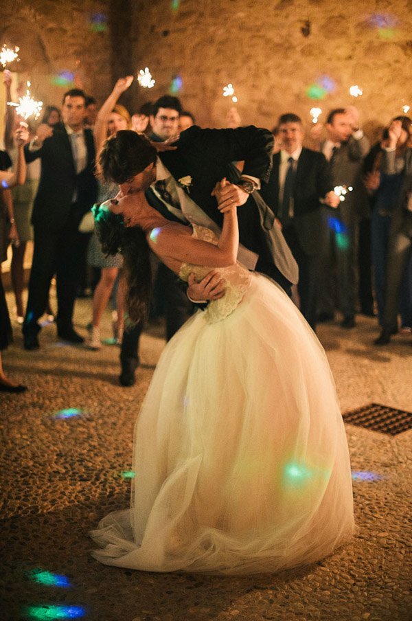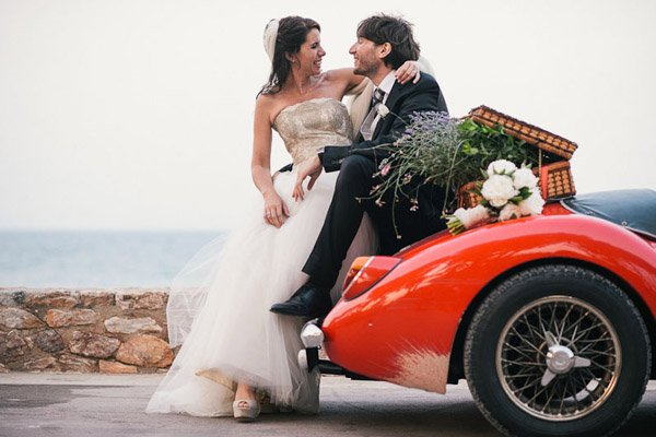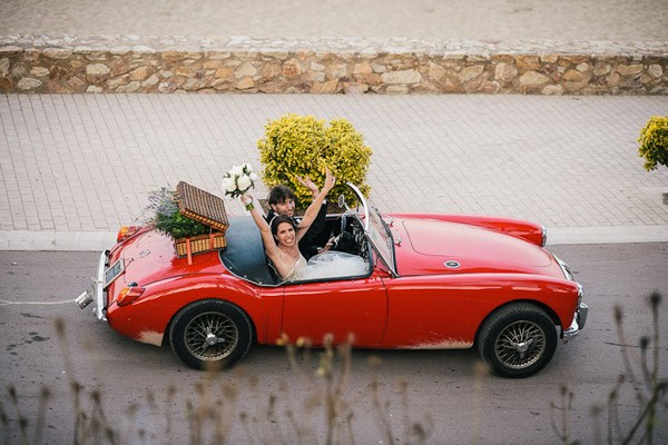 Hoy os traigo una de esas bodas que tanto me gustan, primero porque lleva sello nacional y encima de mi adorado Empordà, segundo porque la ilusión de los novios se respira en todas las fotografías y tercero porque cuando uno se rodea de buenos profesionales, se nota y mucho. La boda de Claudia y Joan tiene ese encanto especial de las bodas hechas con mimo, para lograrlo contaron con la ayuda de Vanessa Folguera, propietaria de Empordà Events, la empresa responsable de toda la organización y coordinación del evento. La ceremonia, de carácter religioso, se celebró en la iglesia de Sant Martí d’Empúries, un bello templo parroquial enclavado casi a orillas de la playa. La novia, para sorpresa de todos los invitados, llegó en un MG rojo descapotable de aire vintage decorado especialmente para la ocasión, regalo personal de la propia Vanessa a los novios. Tras la ceremonia los invitados se trasladaron a una finca cercana, el Cortal Gran, situada en Sant Pere Pescador. Un imponente edificio fortificado originario del s.XVII, construido junto al antiguo curso del río Fluvià. Su propietario, Juan Granada, empezó a cederla para celebraciones de amigos hasta que ya no pudo decir que no a todas las peticiones que le llegaban y decidió adaptarla para bodas y eventos especiales. Es un gran anfitrión y su gusto estético se refleja en todos los detalles de la finca. En sus jardines, Jordi Carda, propietario del catering Cal Blay y responsable gastronómico de todo el evento, fue el encargado de amenizar la espera de los invitados con un aperitivo especial servido al atardecer. Tras el aperitivo y ya junto a los novios, se dio paso al servicio de cena en el porche de la finca. Los centros de mesa mantuvieron la frescura de las bodas de campo con pequeños recipientes de cristal decorados con pequeñas flores silvestres y de temporada a juego con el resto de la decoración, de estilo rustic-chic. Y tras la cena, el baile. Impresionante el diseño del ‘tubo de luz’ por el que tuvieron que pasar todos los invitados para acceder a la zona de baile y que el fotógrafo Manel Tamayo supo captar a la perfección en sus fotografías. Preciosa también la imagen de los novios lanzando farolillos voladores al cielo en compañía de sus invitados y el romántico baile a la luz de las bengalas. El cierre perfecto para una velada realmente especial.