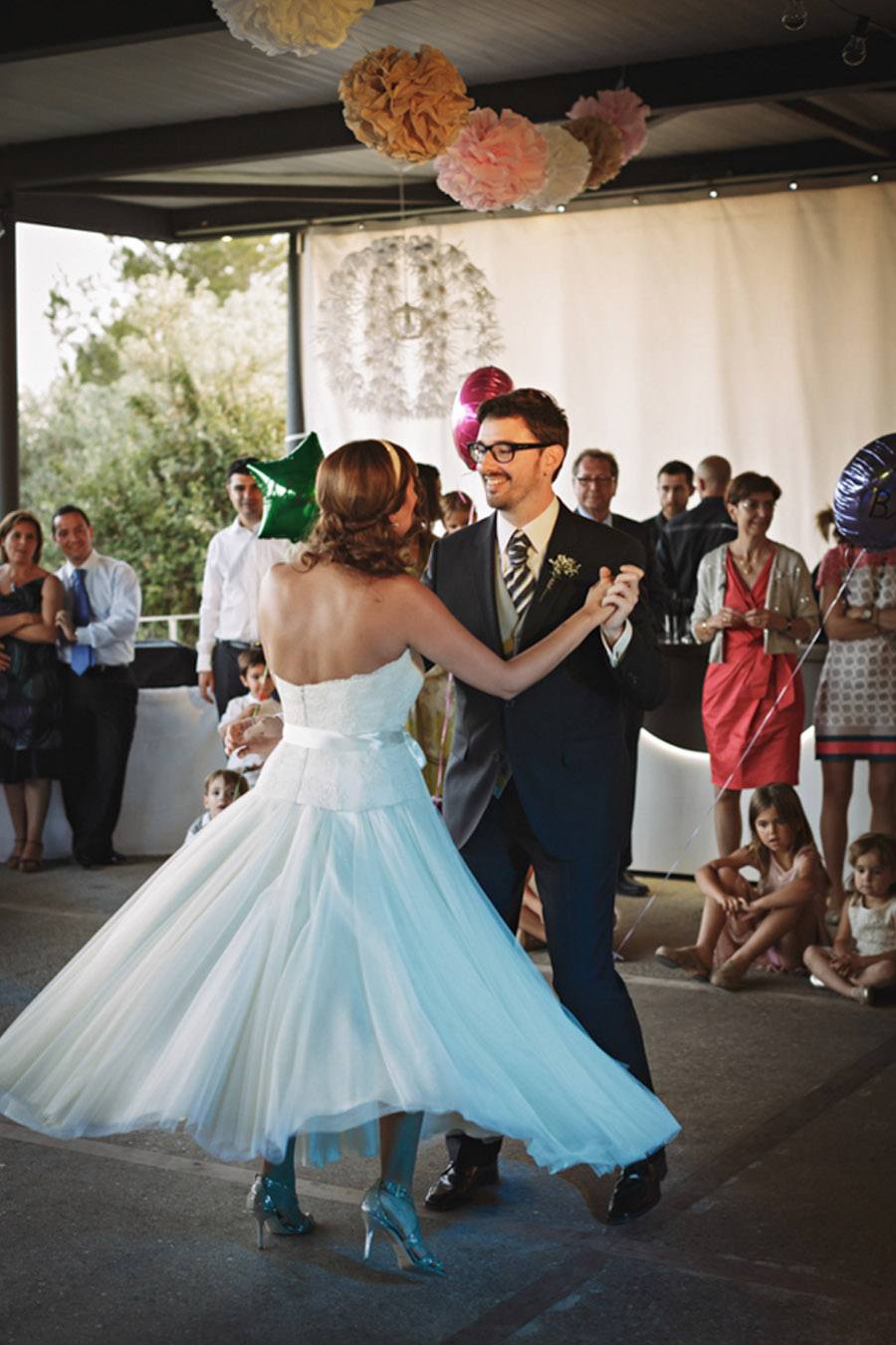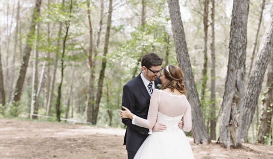 La historia de Mar y Jordi empieza en la Universidad en su época de estudiantes, por aquel entonces Jordi estudiaba Ingeniería Química, una carrera con más presencia de chicos que de chicas por lo que era difícil para Jordi y sus amigos encontrar un grupo de chicas que completasen su pandilla. En estas estaban cuando conocieron a Silvia, una de las amigas de Mar, el destino quiso que tanto Jordi como Mar celebrasen su cumpleaños el mismo fin de semana y él intentó convencerla para que lo hicieran juntos para de esta forma unir a los miembros de sus respectivos grupos, a lo que Mar se opuso rotundamente ya que no conocía de nada a ese chico con gafas al que parecía no importarle celebrar una fecha tan especial con una desconocida. Pero el azar es caprichoso y tras varios encuentros Jordi consiguió que Mar le diese un sí, esta vez para salir juntos. Años después, durante un viaje a Nueva York, Jordi le pidió matrimonio a Mar. A la vuelta empezaron con los preparativos, lo primero y más importante elegir espacio adecuado. Cuando visitaron La Garriga de Castelladraldurante una jornada de puertas abiertas, lo suyo fue amor a primera vista. La preciosa masía de piedra, la Era, sus impresionantes vistas y el trato familiar de sus propietarios les hizo decidirse enseguida. Lo mejor de un espacio tan bonito es que no hace falta mucha decoración para que luzca radiante, basta con saber elegir los detalles adecuados. Al tratarse de una boda con un punto rústico toda la decoración respiraba frescura, las flores, los recipientes de cristal y el menaje de estilo vintage combinaban a la perfección con el paisaje y la personalidad de sus protagonistas. La entrada de la novia fue espectacular, precedida por sus damas de honor y vestida con un diseño de Vel l’Atelier con sandalias plateadas de Jimmy Choo. Tras la ceremonia, no podía faltar un romántico un paseo por el bosque de La Garriga un lugar de cuento perfecto para la sesión de fotos más íntimas de la pareja. Al finalizar, un saxofonista en directo amenizó su regreso a la fiesta, donde les esperaban sus familiares y amigos para seguir celebrando juntos y brindar por su felicidad.